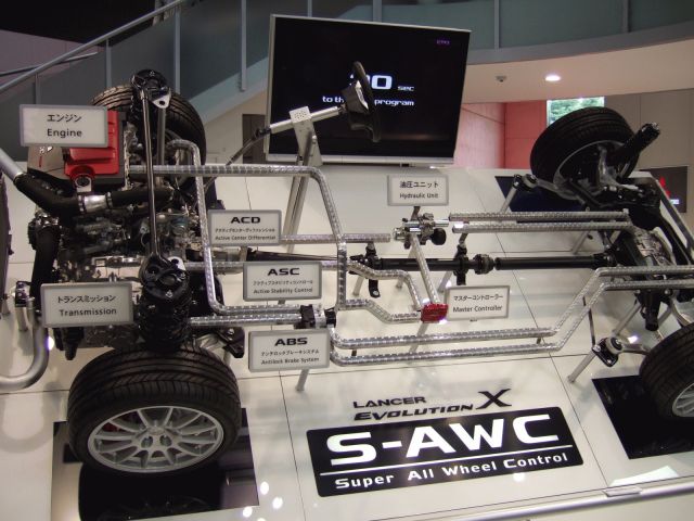 | 場入り口にレクサスがドーン。ちょっとなあ。私は豪華な装飾じゃなく、車とメカに興味あるんだけれど。 | レクサスはどれも似たデザインで、高い。 | ランサーエボX。確かに公道で速そう。 | これが格好良かったんだ。1953年のボルボ・エステート「デュエット」。 | - |