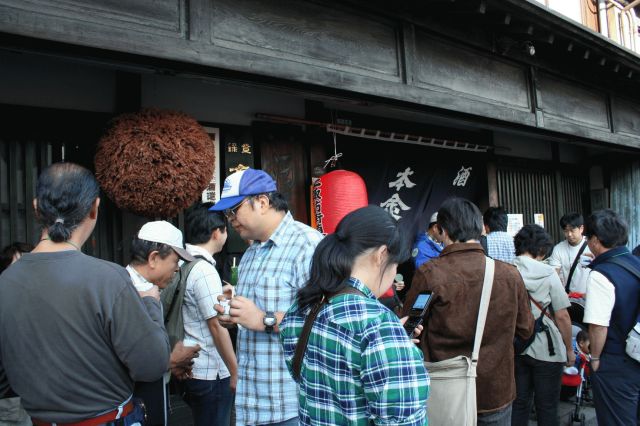 | 駅から最初の蔵元は舞姫。2千円でパスポートとぐい飲みをもらうと、いくら飲んでもOK。 | こんな感じで、皆さん楽しんでます。 | ここは地ビールの生産場所。 | 二軒目の蔵元、麗人。名前が良いですね。 | 三軒目、本金。 |