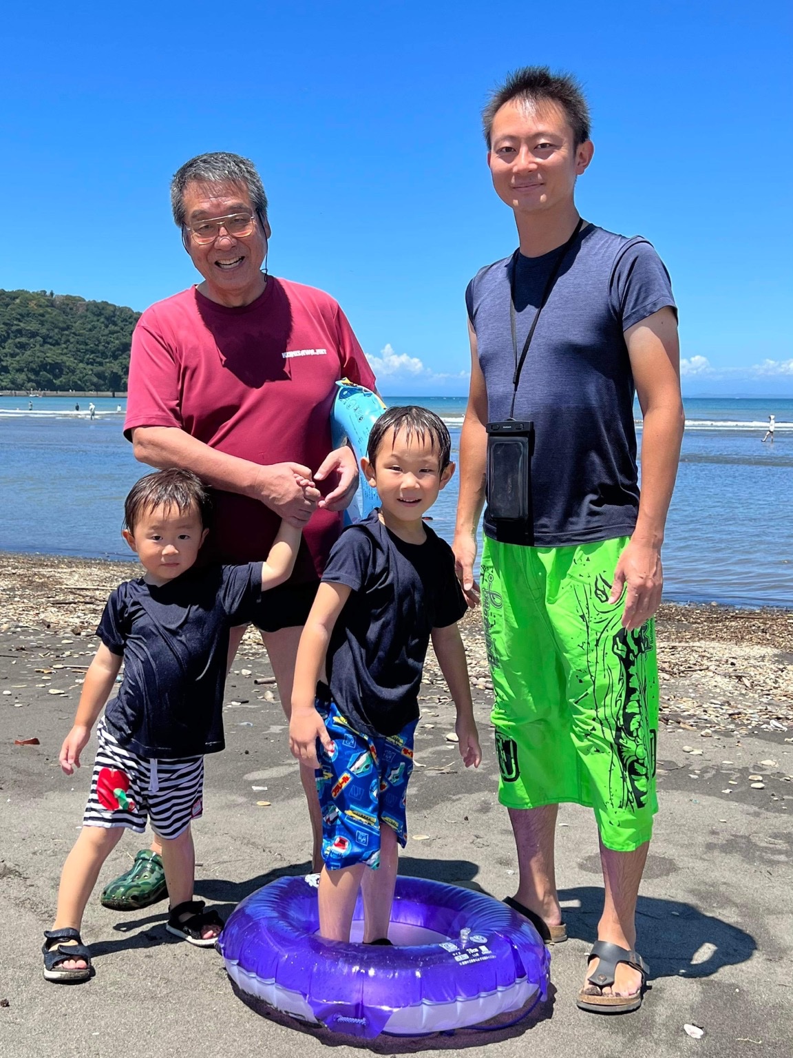 2005年に千田さんに誘われて始めた年三回、二泊三日の飲兵衛キャンプ、もう17年になるのか。コロナのせいで3年ぶり。 もう体力も無くなったし暑さも厳しいので止めようかと思っていたら、三年前に電車で日帰り海水浴をした孫1号が覚えていて、行きたいと言う。 娘婿が孫1、2号を連れて来てくれると言うのでがんばりました。 二人とも海を楽しみ、波乗りが大好き。初めての孫2号も「海、サイコー」と喜んでいた。この子はウチでの隠れん坊が大好きで、私のチェック柄の布団に隠れて、「お布団、サイコー」とも叫ぶ。 孫1号は納戸や風呂などに隠れるのが大好きで、同じ兄弟でも好みが違うんだなあ。どちらも可愛い。最近は、一丁前に憎まれ口もよく言うけれど。 さて、来年も来られるかなあ。孫二人の相手をするのも、あと数年か。キャンプメンバーも少しずつ変わっているけれど、元気でやりたいものだ。 |