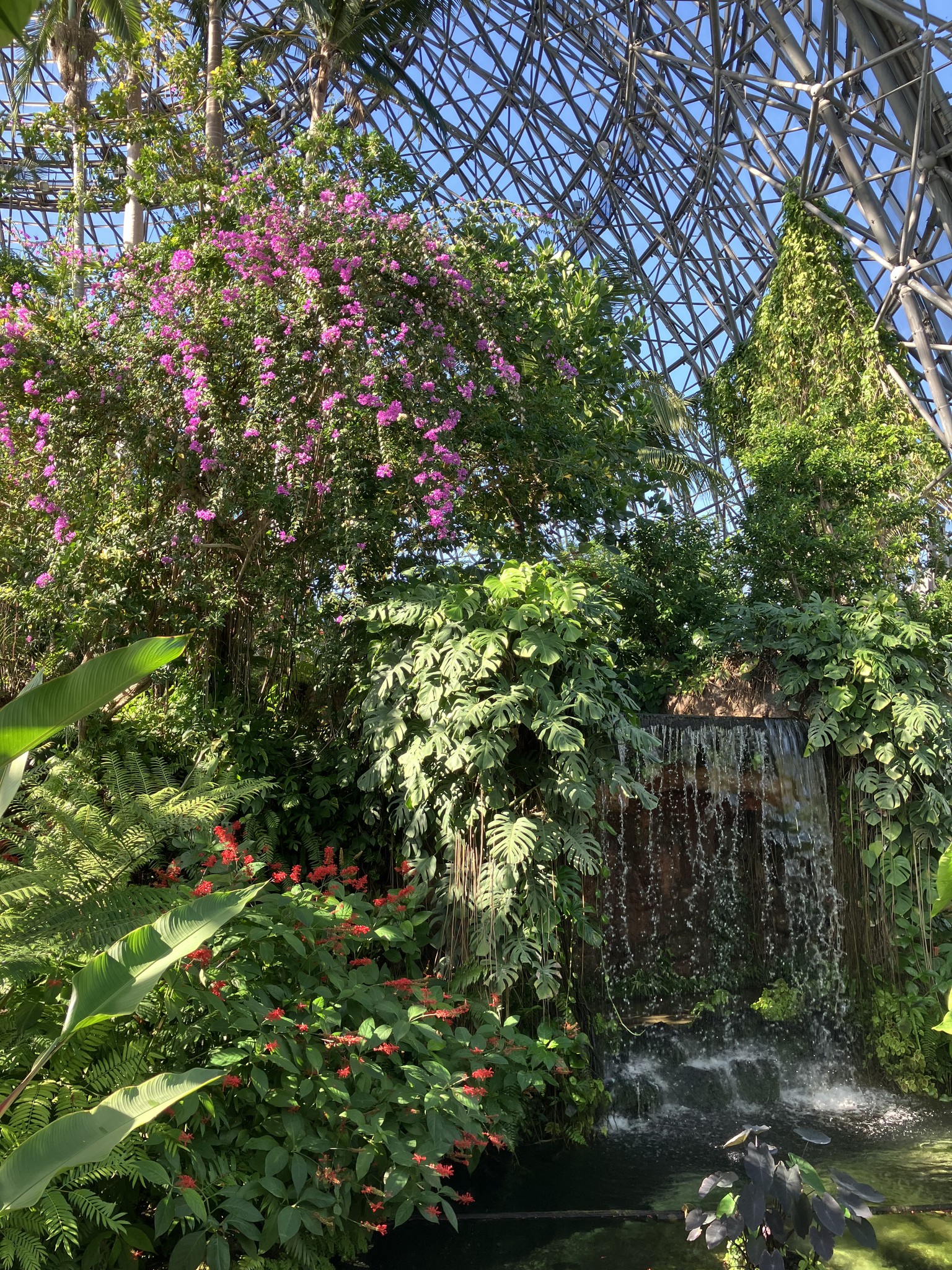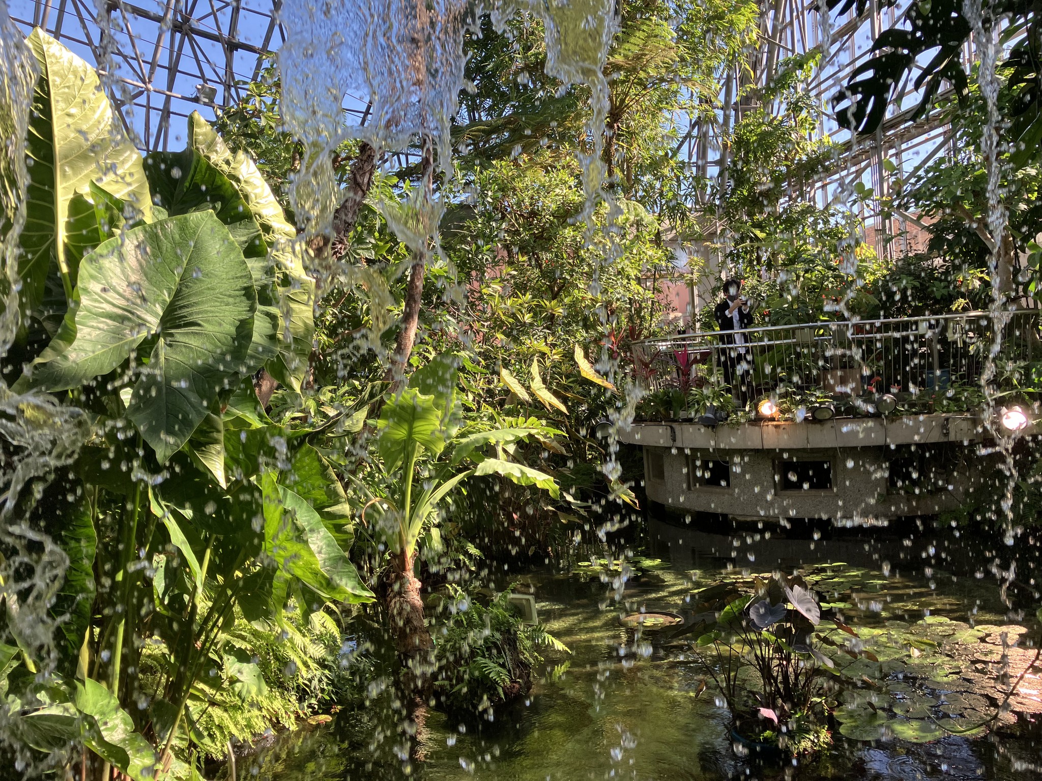 | 船尾から船首へ。 | こういう船だった。 | 夢の島熱帯植物園。 | 最初の滝の風景が素晴らしい。 | 何となく綺麗。 |
