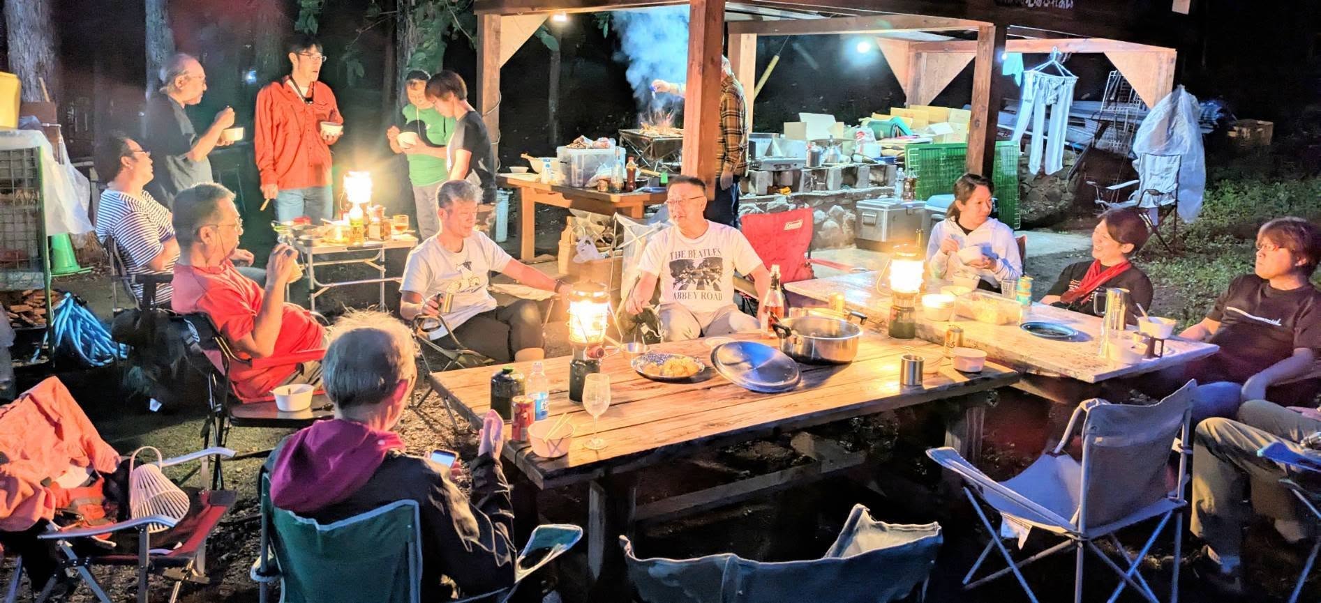 13-15日は標高900m程の片品村森のキャンプ場で飲兵衛キャンプ。年三回(1回は海キャンプ)、老若男女20数名が集まりワイワイガヤガヤ。それぞれ好き勝手に過ごしました。もう20年も参加させてもらって、私もはや74歳。腰は痛いし体力は無くなるし、酒もあまり飲めなくなった。 メンバーには料理好きやコーヒー好きも多いし、本物の料理人も居て腕を振るってくれます。私はもっぱら皿洗い。