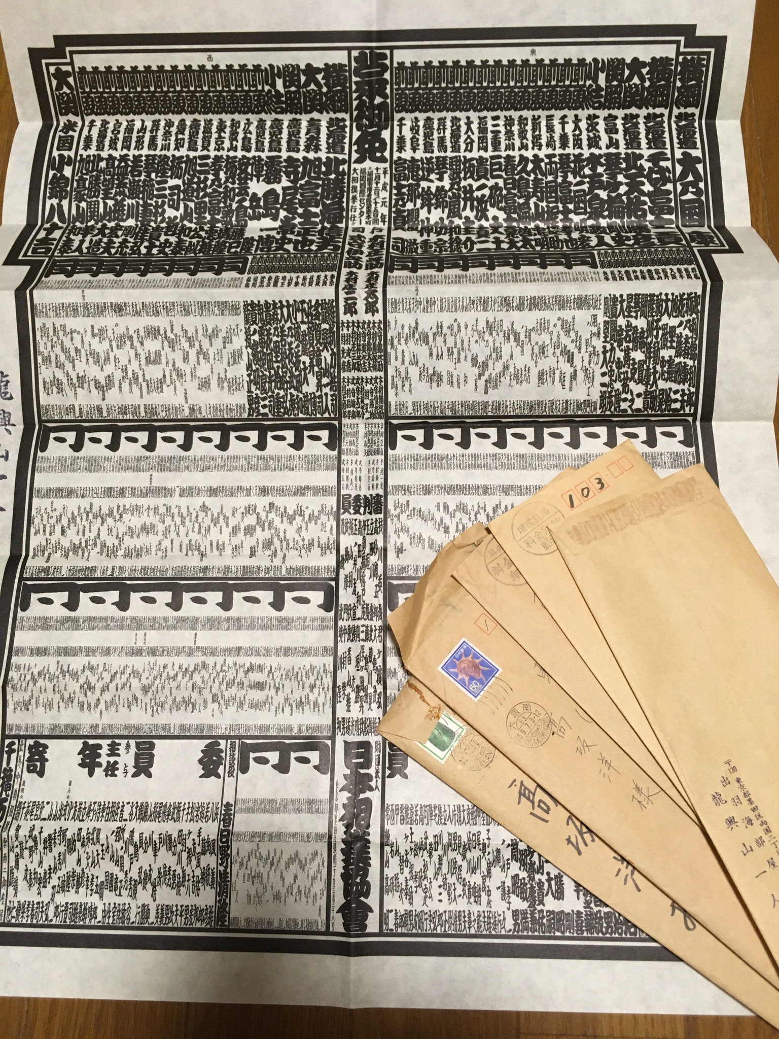 昨日15日から、元気なら飲兵衛キャンプなのだけれど、都合悪く欠席。思いついて片付けすると、大相撲の番付表が出て来た。昔、龍興山という力士と知り合い、いつも番付表を送ってもらっていた。