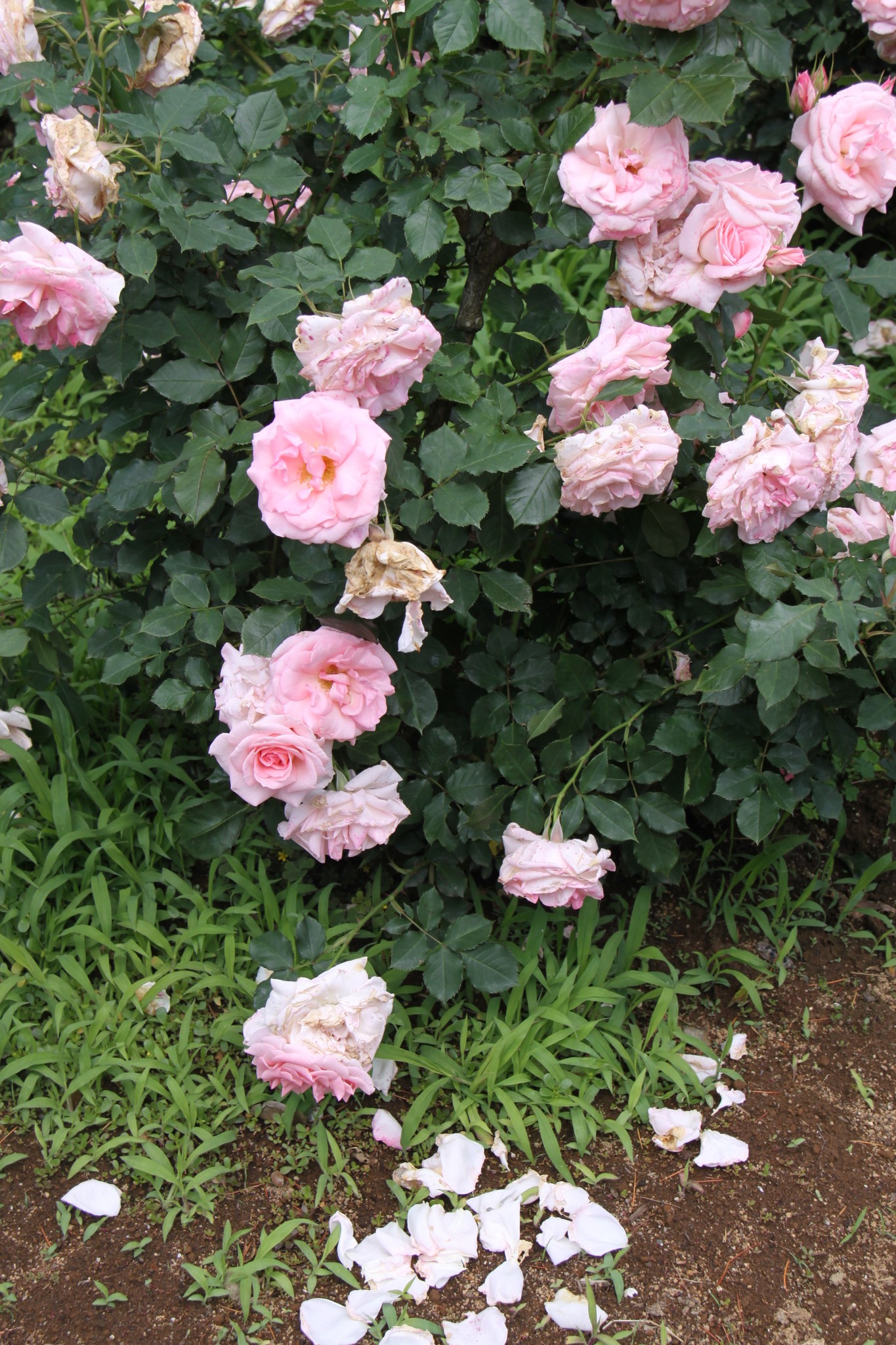 | だいぶ散っているバラもあった。人体の九相図では無いが、蕾、花を愛でるだけで無く、散る花も見てやらなくちゃな。 | - | - | - | - |