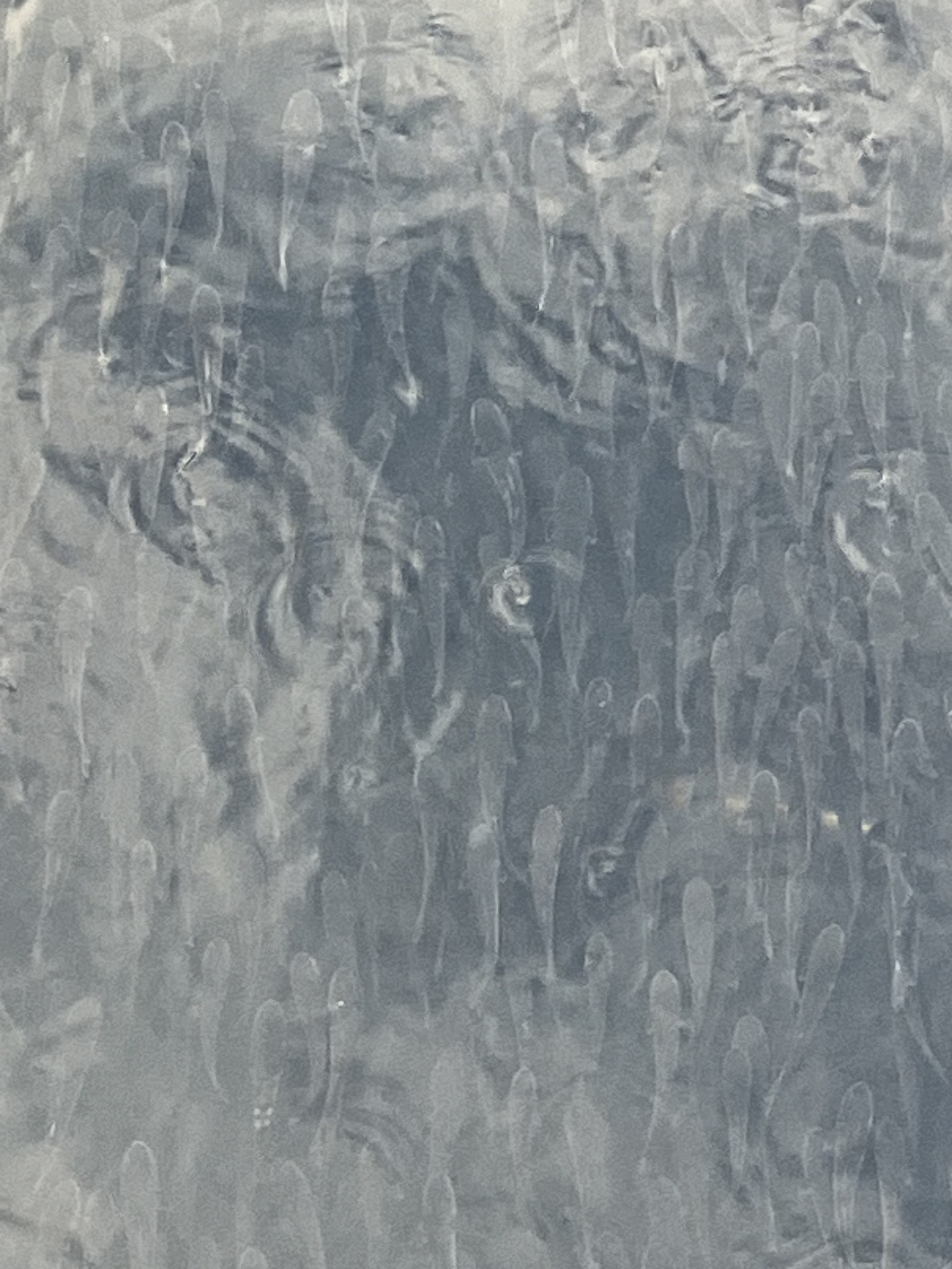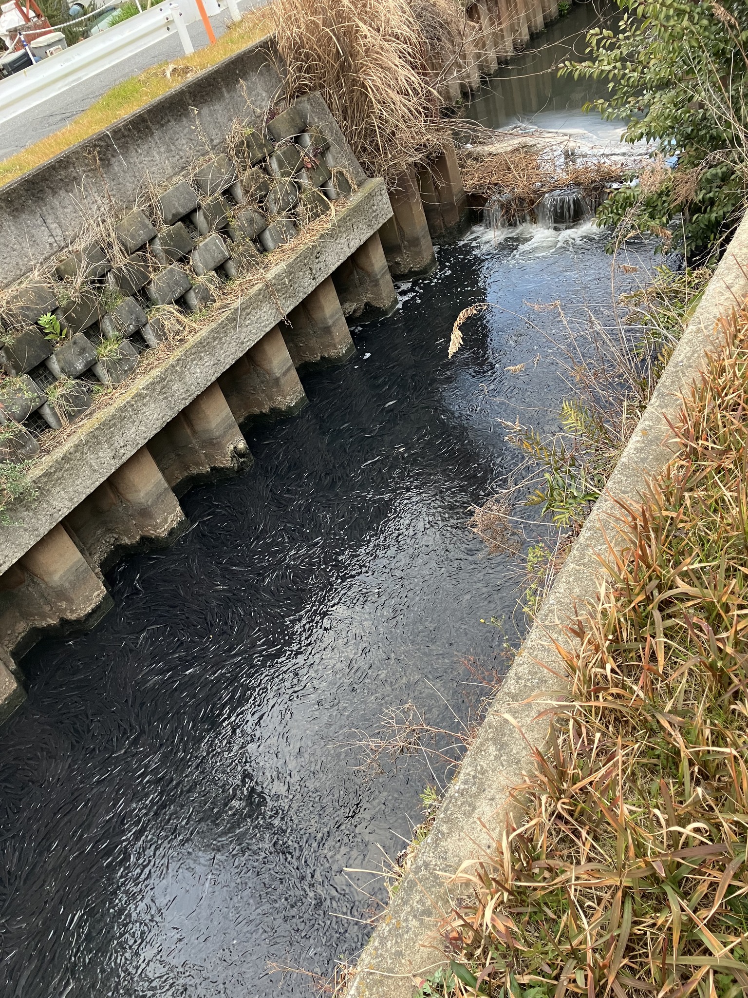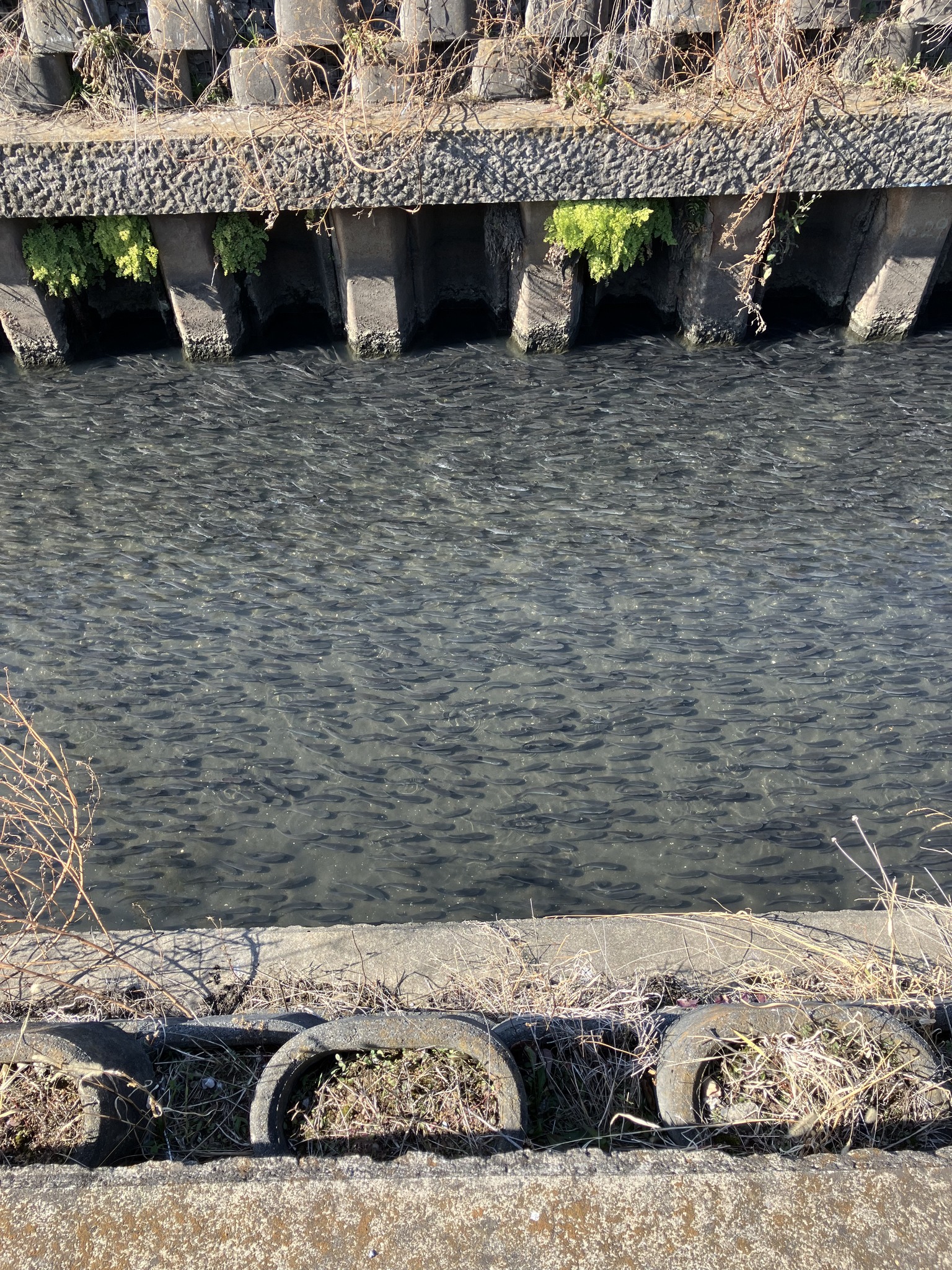 今日は節分。暖かく陽の光が気持ち良いので、午前中にいつもの道の駅までのんびり散歩。と、春木川まで来たらおばあちゃんが川を覗いている。何じゃろと覗いたら、エライ魚じゃありませんか。 「こんなの初めて見たけど、何でしょう」 「いゃあ、僕も初めて何でびっくりですねえ」 「ボラかねえ」 「鮒やハヤじゃないし、ボラの子でしょうかねえ」 普段は魚の姿は見えないし、時々野鯉や大きな鮒が迷い込むような貧相な春木川なのに、とんでも無い数の群。鮭の遡上じゃあるまいし、ボラの遡上なんて初めてだ。 彼らはどうするつもりなのか、鮭なら遡上して産卵という摂理だけれど、ボラは何するのか。 残念な事に、先頭辺りでは白鷺たちが待ち構えているし、曽谷橋の下は30p程の高さの段になっていてそれ以上遡上出来ないのだ。