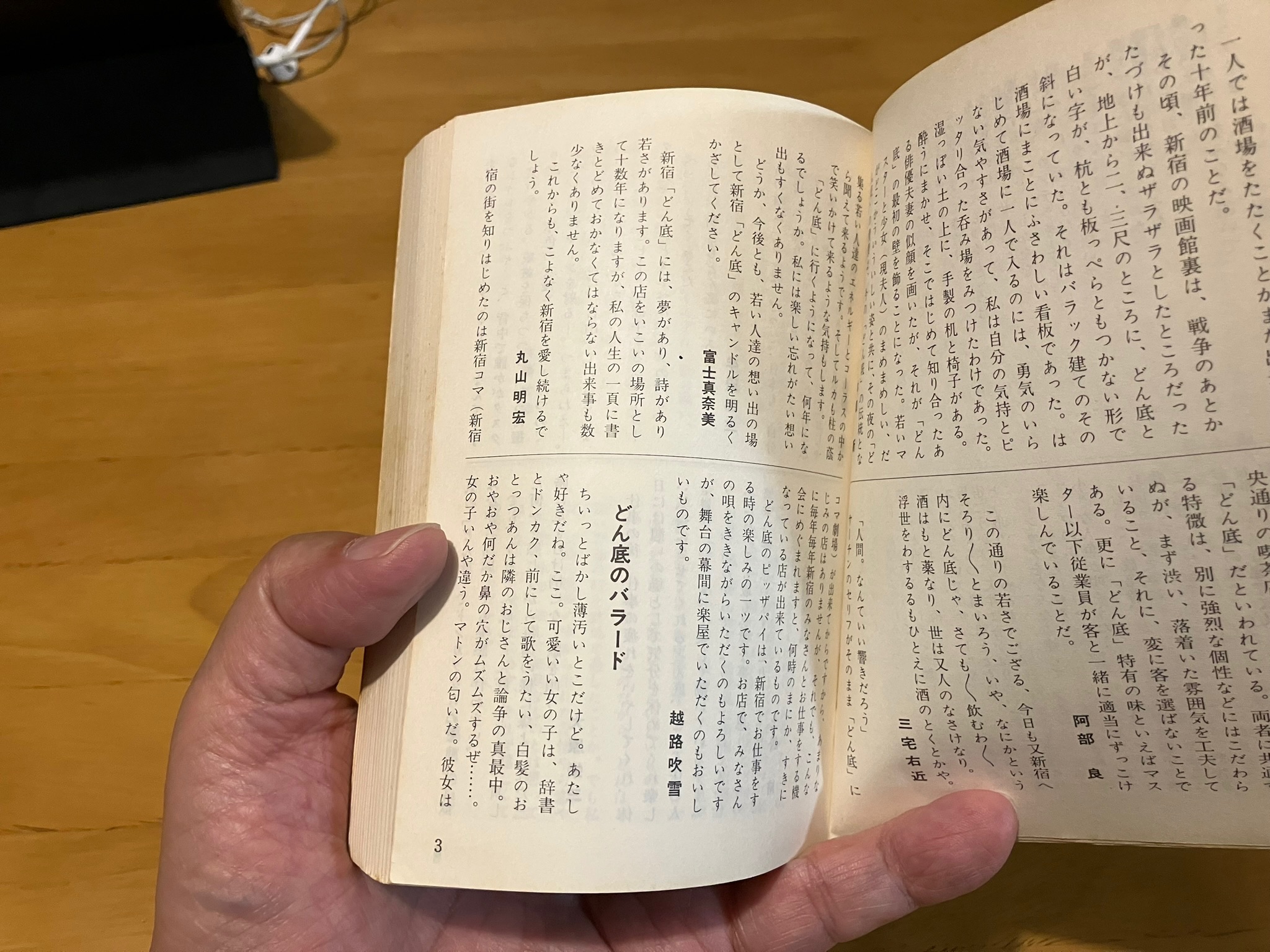 TVでは居酒屋扱いだけど、あの頃は歌声酒場で、客同士が声を合わせていた。もちろんカラオケは無いし、アコーディオンの伴奏が有ったかな。結構フランクで若者の出会いの場みたいなものだった。歌集を買って合唱した。