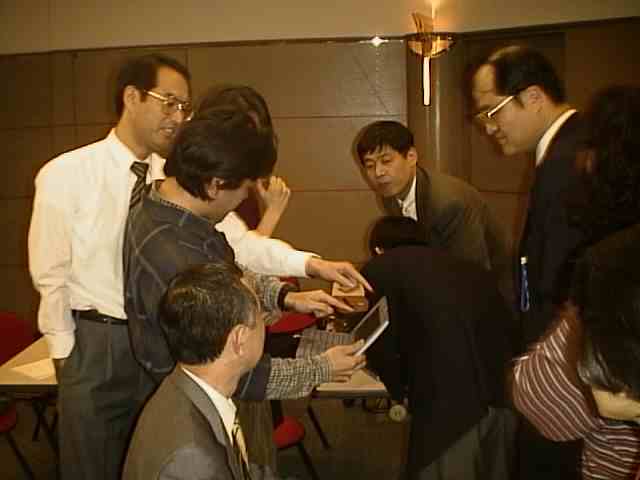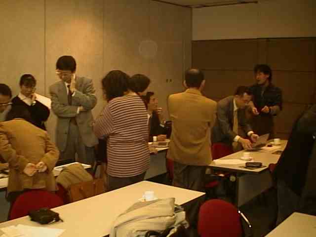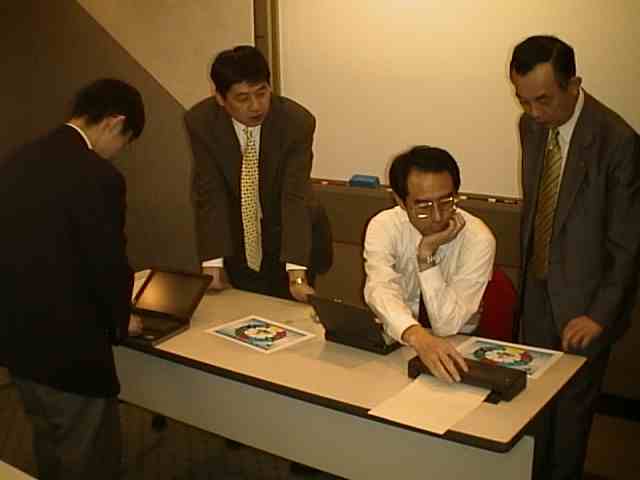 「パソコン持ち寄りモバイル大会」 10人の方がパソコンを持って来てくれました。 順番に、どのような使い方をしているか、機械の特徴は、等につきお話しいただき、その後はざっくばらんな情報交換。 これからパソコンを買おうという方から、私のようなモバイル一年生、そしてプッシュ技術の専門家まで、レベルは様々ですが結構盛り上がって楽しいひとときでした。