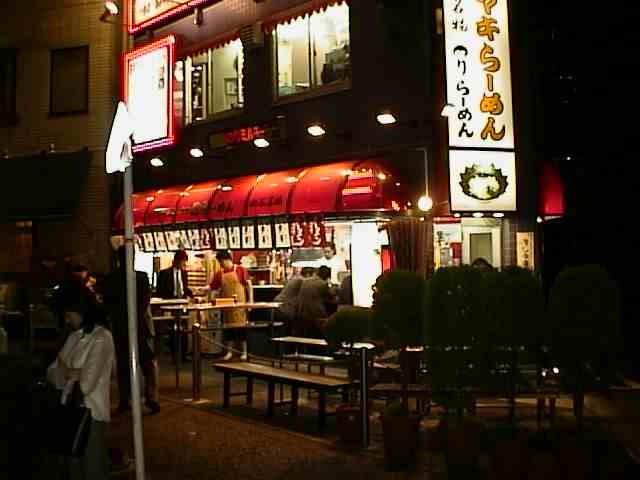 | 気持ちよく飲んで歌っての後、みんなのタクシーを見送ったら、なかなか自分のタクシーが来ないので、明日は休みで急ぐわけじゃなし、何年ぶりかで一心らーめんを食べました。 細麺で美味いんですこれが。ゆっくり食べてデジカメで記念撮影。楽しい夜が過ぎ去って、朝が近いです。 |