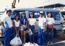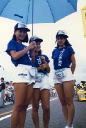 | これは1986年の鈴鹿サーキットかな。大阪東レの女性たちに、レースクィーンのようなお手伝いをお願いしました。結構綺麗でスタイル良くて、アンケートなど雑用を色々やってもらいました。 彼女たち、それぞれ今はどうしているのだろう。お一人とは今でも年賀状を交換していて、元気で働いていますが、他の人たちはどうしているのかなあ。20年経っているのだからねえ。 |