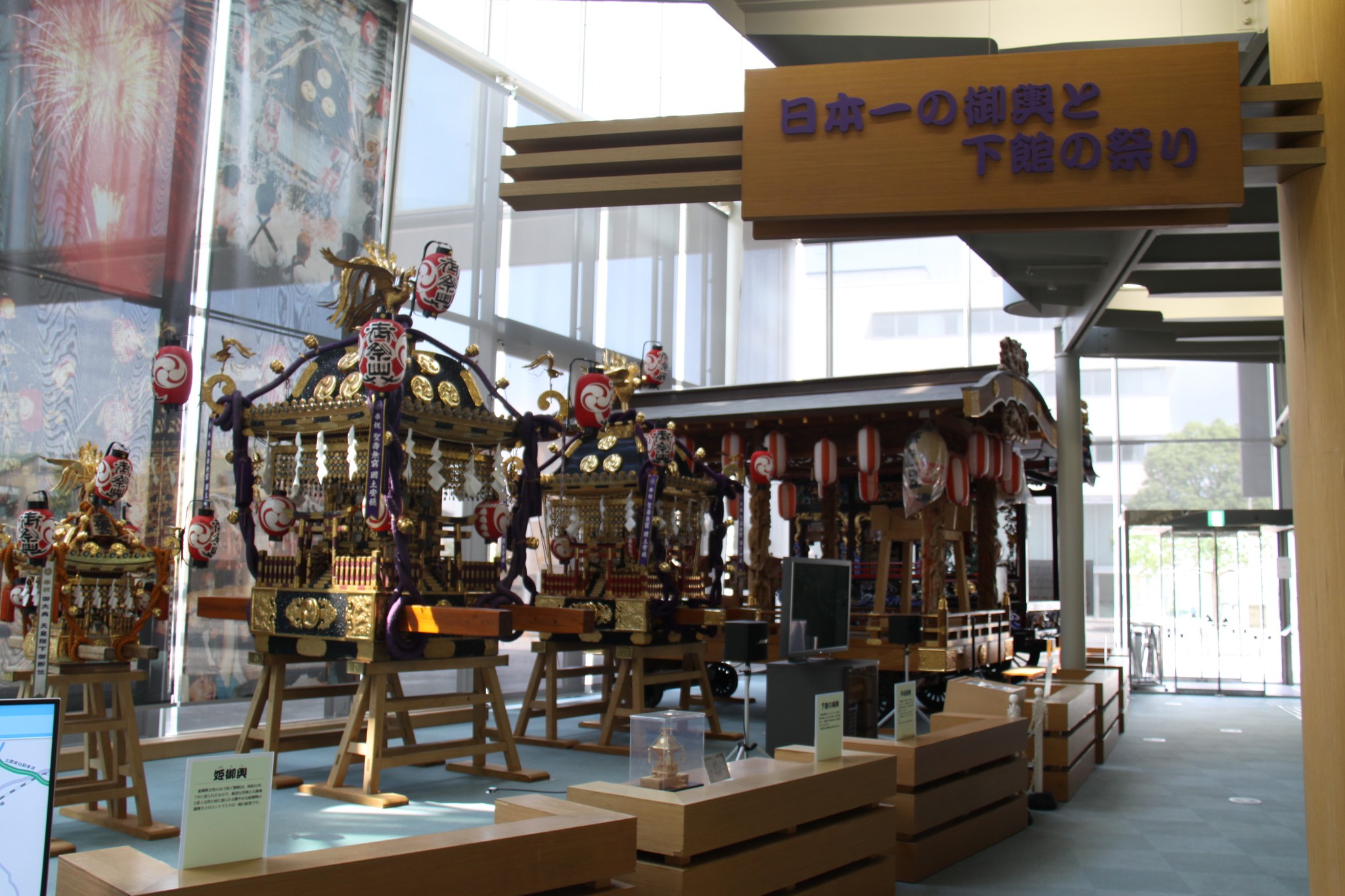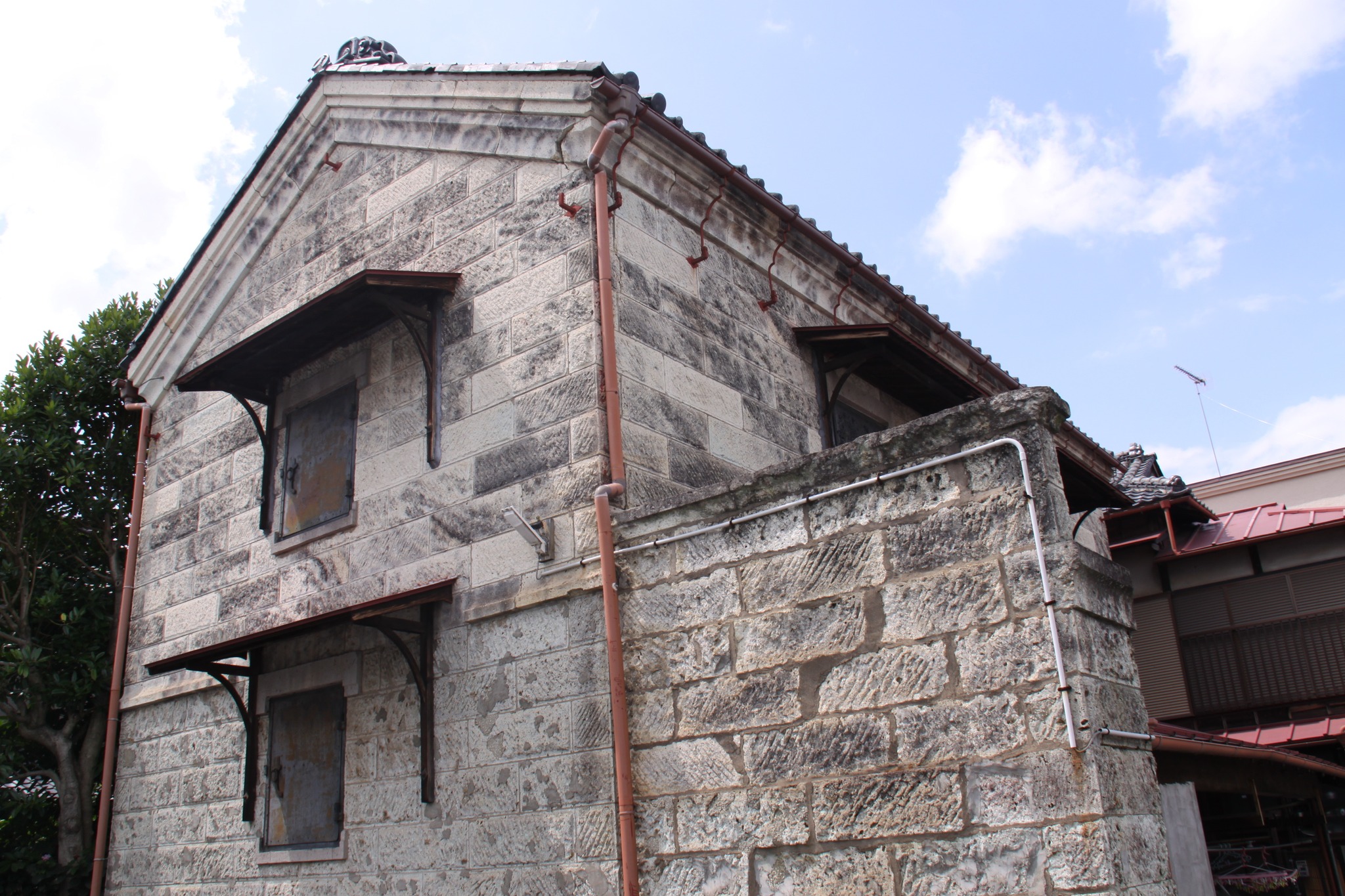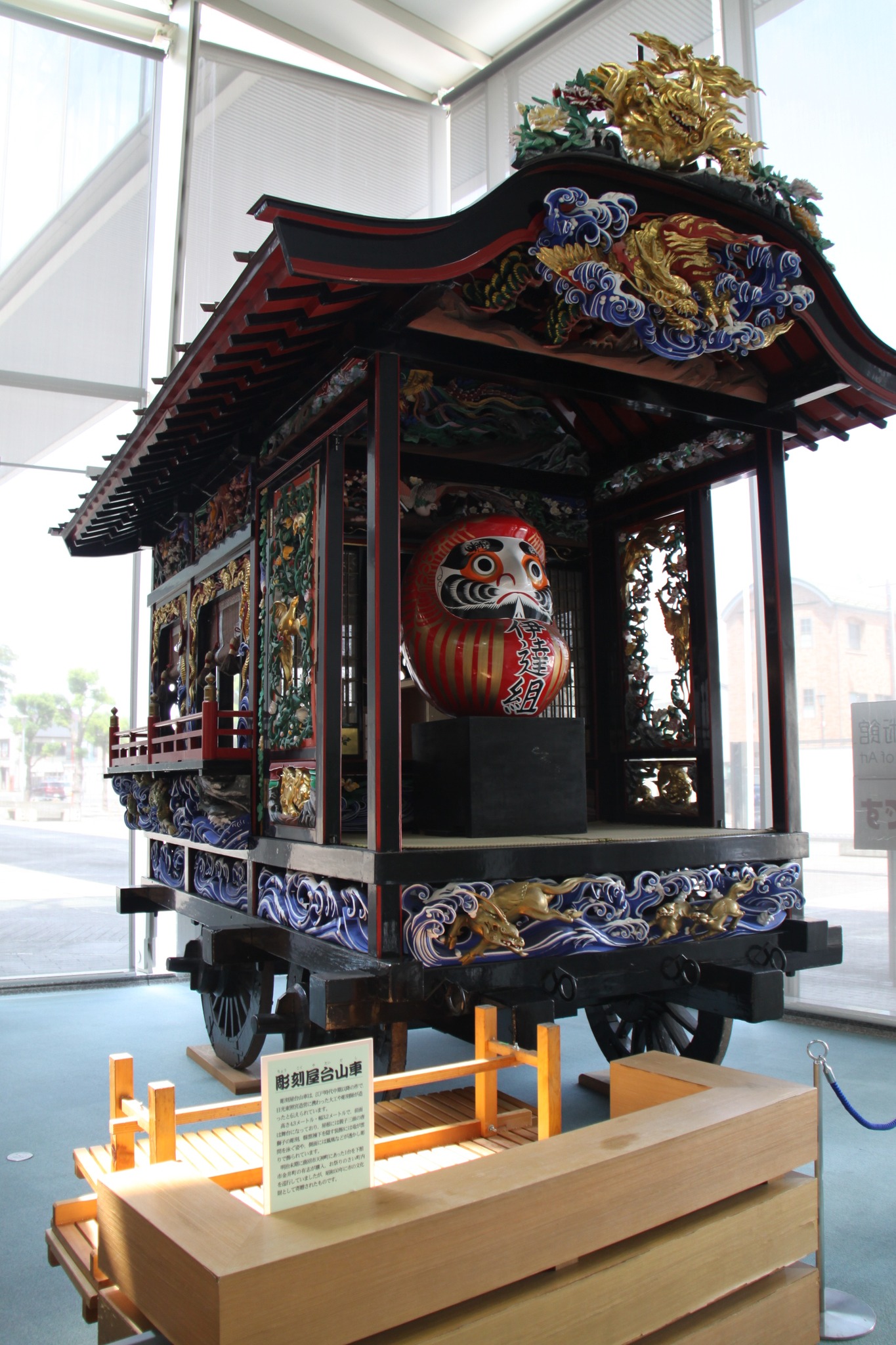 | 下館祇園まつりというものがあり、賑やかだそうだ。アルテリオの一階に神輿が展示されている。 | 日本一の神輿だって。 | 記念館の近辺は蔵の街並み、といわれ古い建物がちらほら。これって二階建てを持ち上げて三階建にしたのか。 | 変わった石造りの蔵かな。 | - |