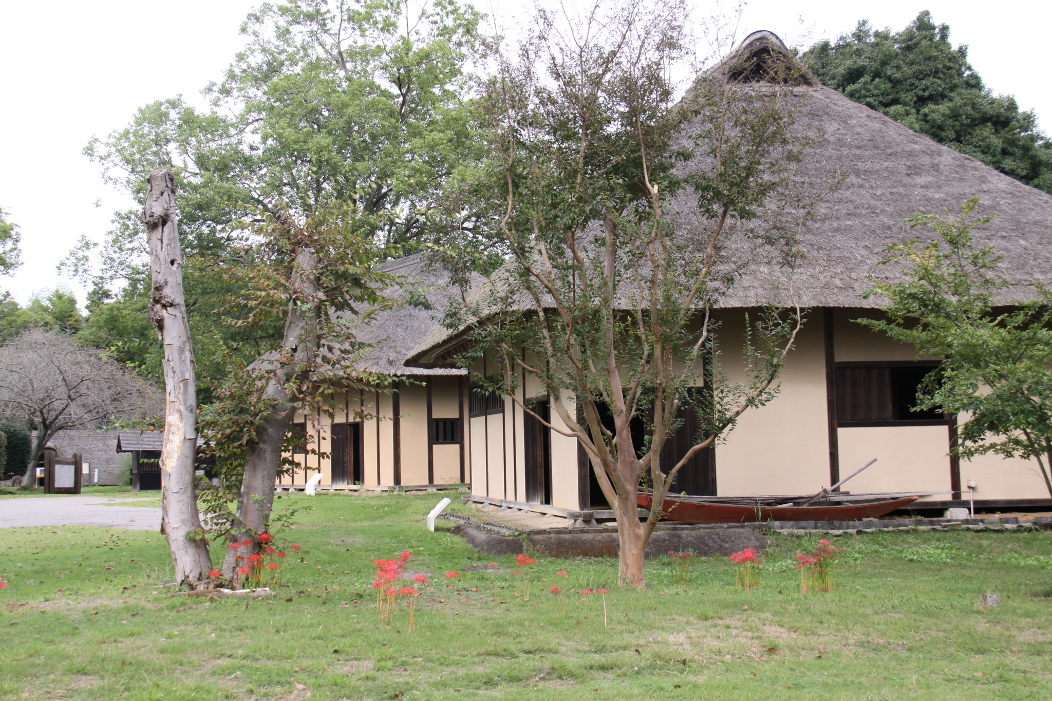 | 縄文の復元家屋。 | 奈良から江戸までの復元家屋。 | この連棟家屋は初めてみた。 | 曼珠沙華の季節だねえ。 | 曲がり屋は東北と茨城に多いとか。知らなかった。 |