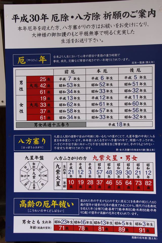 | - | - | いやあ全部飲んでみたいなあ。 | 残念、ご祈祷が終わったところでした。 | 67歳だと厄年も関係無いんかい、と思ったら下の方に高齢者向けを作ってました。 |