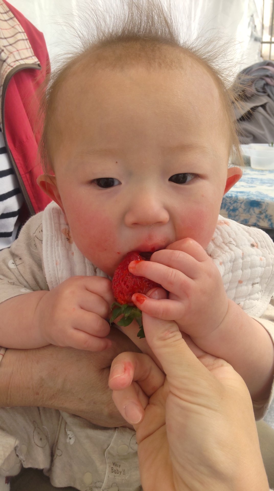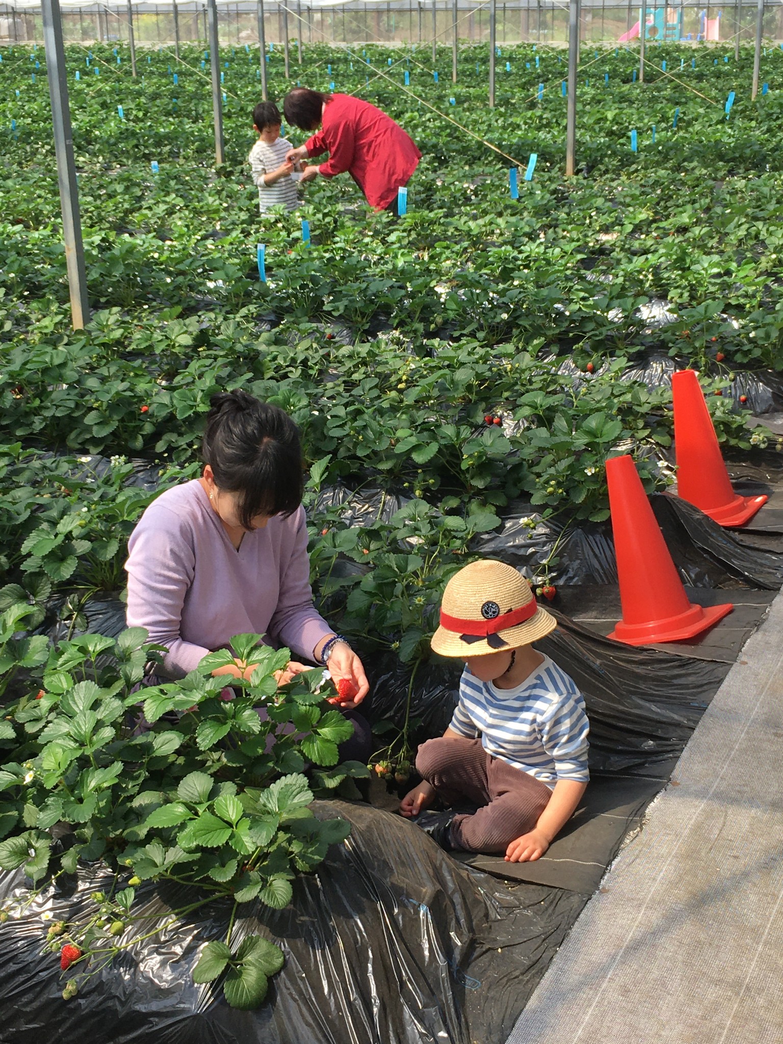 昨日は孫3人とイチゴ狩り。ネット割りで大人2300円とは、食べ放題とはいえちと高い。まあ孫たちが喜ぶなら、と思ったが意外に楽しめた。
