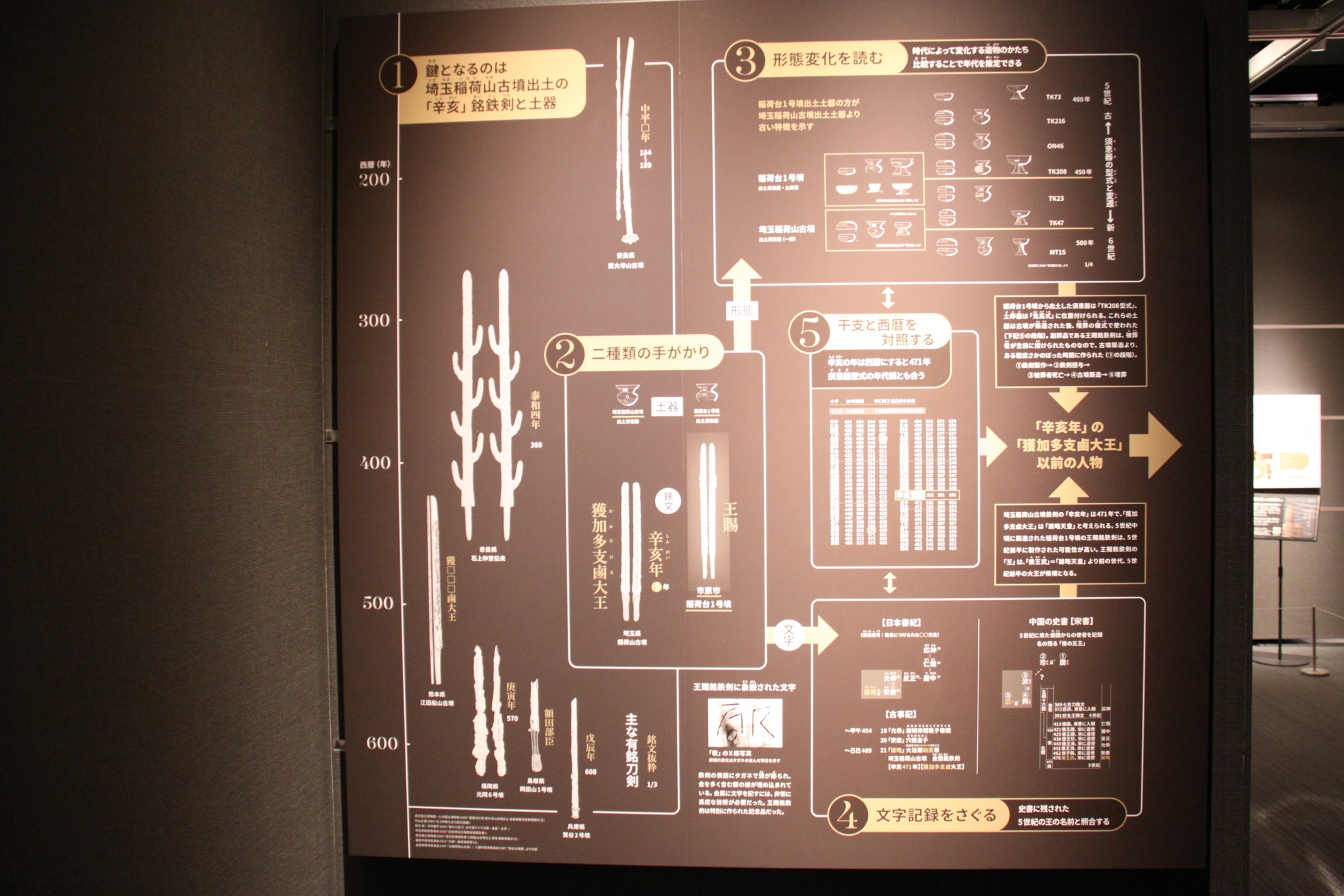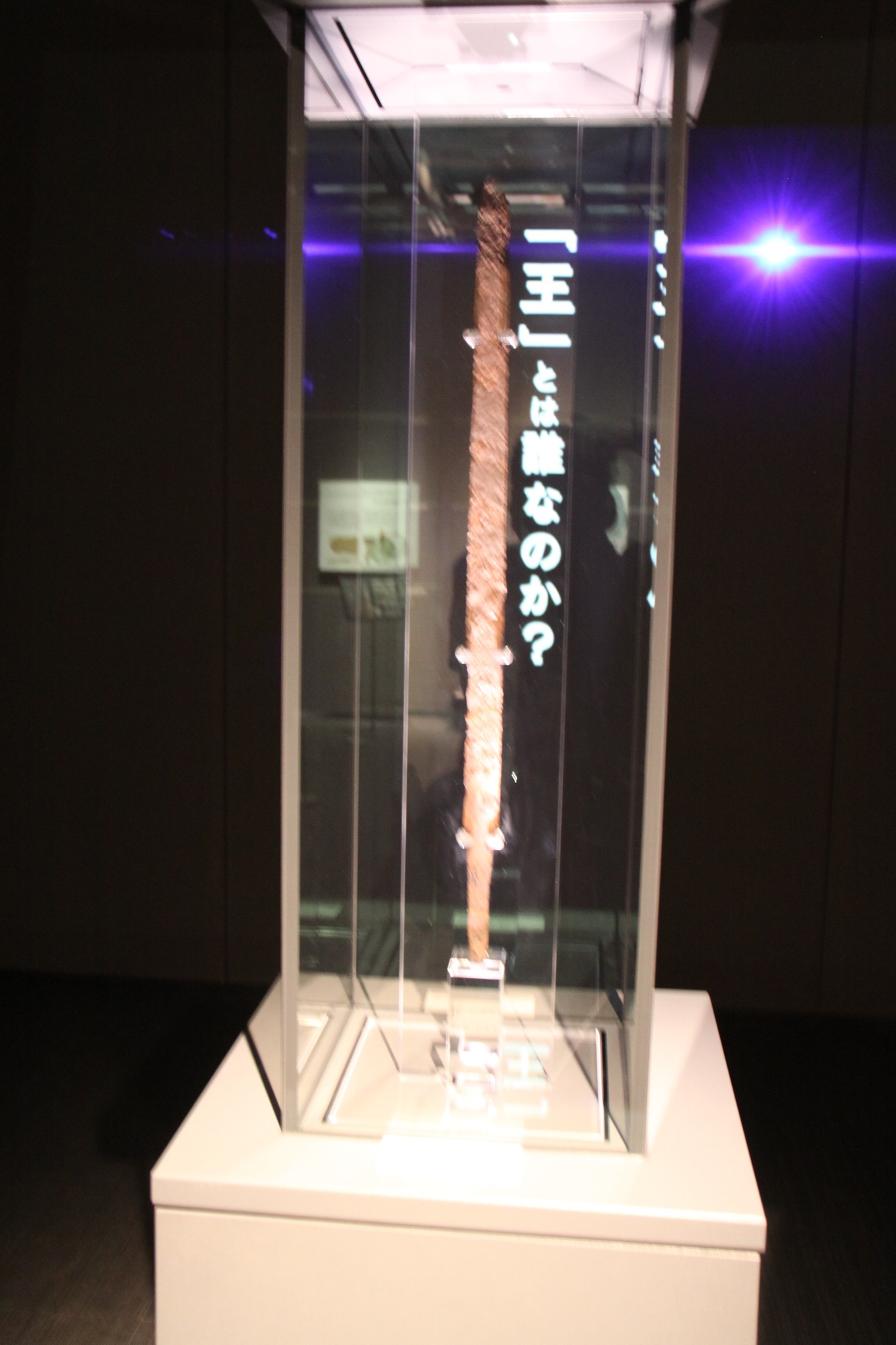 | 「王賜」銘鉄剣の部屋。 | 大仰なんだけど、よく見えないよ。 | 王は倭の五王のうちの倭王済、允恭天皇としているが、系図的に合わないのでは無いかなあ。 | 出羽三山信仰についてもきちんと展示していた。 | 五大力船、市原と江戸を結んでいた。川も海も航行できる120石程度の船。 |