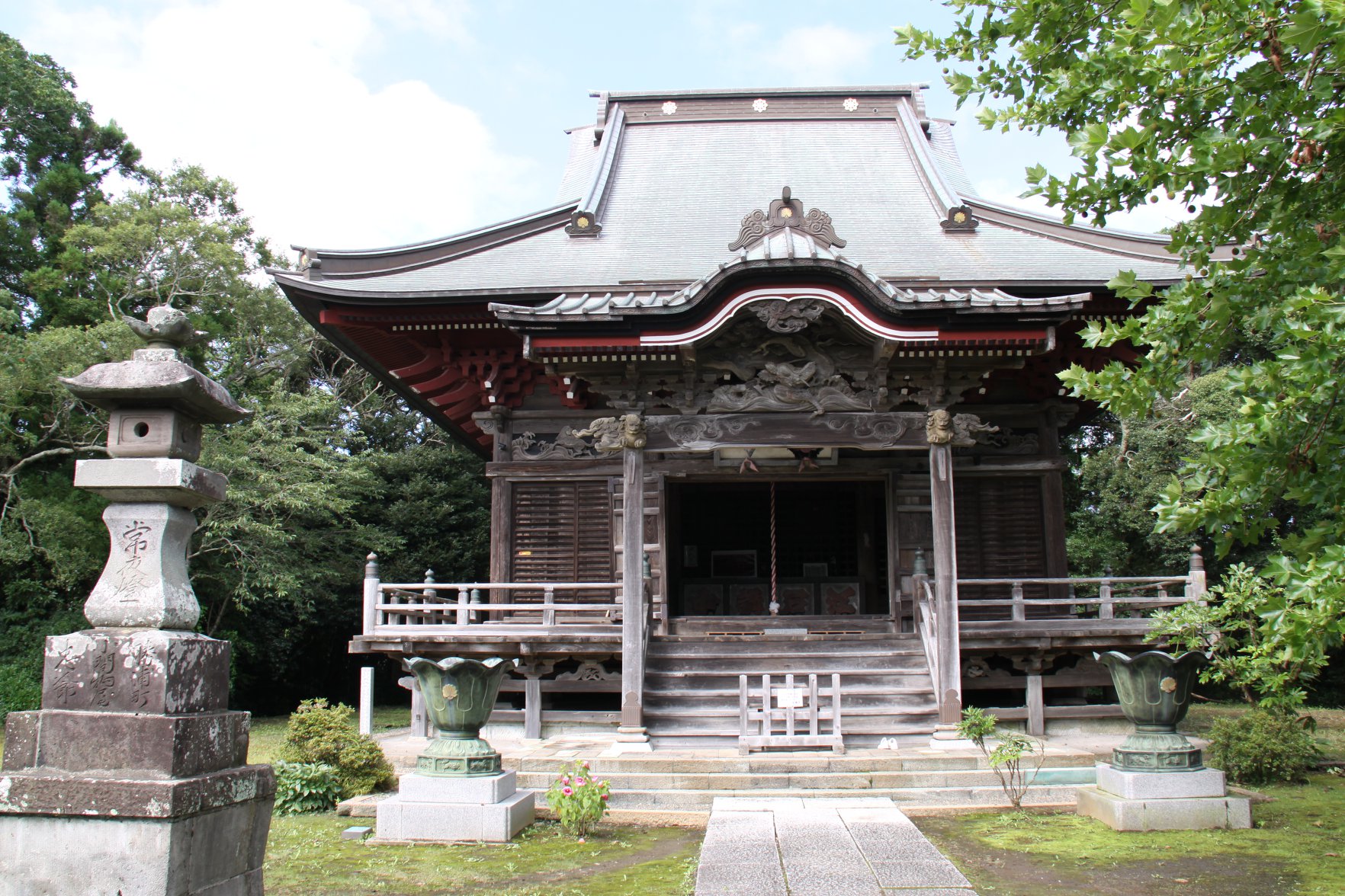 久しぶりの日差しなので、昼からいすみ市へドライブ。千葉県には「波の伊八」の彫刻が点々とあるのでそれを時々見に行っている。 今回はいすみの飯縄寺。寺の建築がすべて江戸時代のもので、本堂の正面には、伊八の最高傑作と言われる「牛若丸と大天狗」。 確かに浮き彫りが何層にもなっていて迫力がある。 その左右には龍と波。北斎が学んで「神奈川沖波裏」を仕上げたというあの波を彷彿とさせる形だ。天井には、北斎の師匠だったと言われる堤等琳の天井画もある。 「撮影禁止」の張り紙があるので撮らなかったけど、無粋だねえ。気分が乗らなかったので、ご朱印ももらわなかった。 参拝者は私の他に二組だけ、老夫婦とは挨拶を交わして気持ち良く、ネービーのTシャツにサロペットのおねいさんは一人で来ていた。