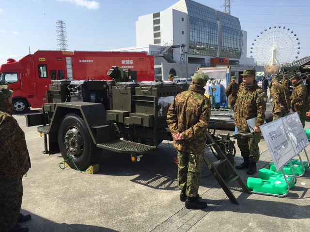 3月18日、会場の屋外展示は自衛隊。私の好きな軽装甲機動車も展示されていた。
