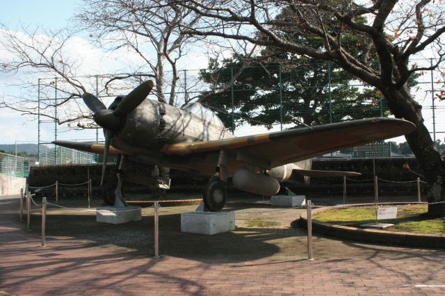 | 鹿児島中央駅の上にはこんなモノが有ります。 | 知覧。映画に使われた一式戦闘機、隼。 | 中島飛行機ですな。 | 不謹慎だ、と呑兵衛が言ってました。 |