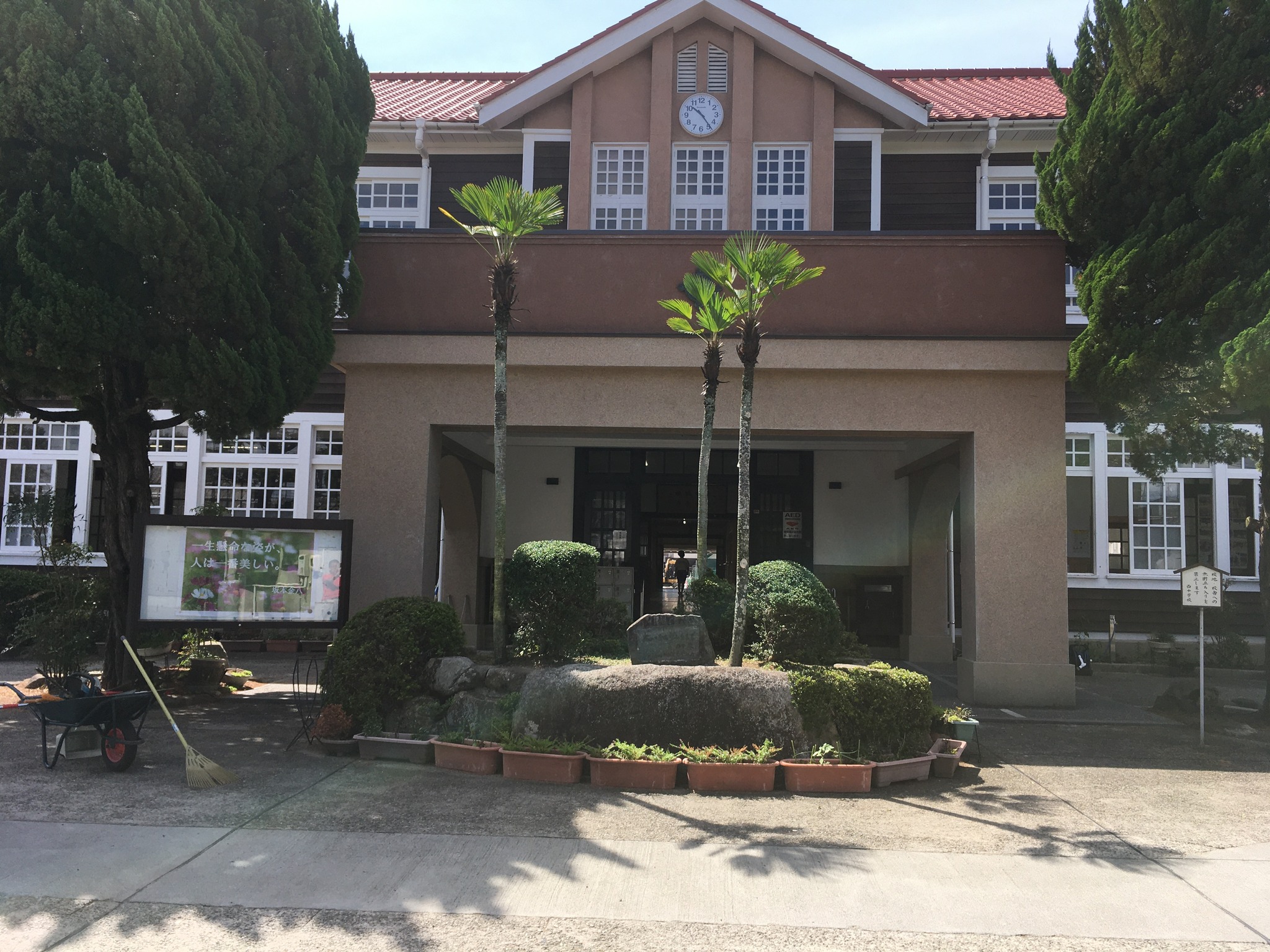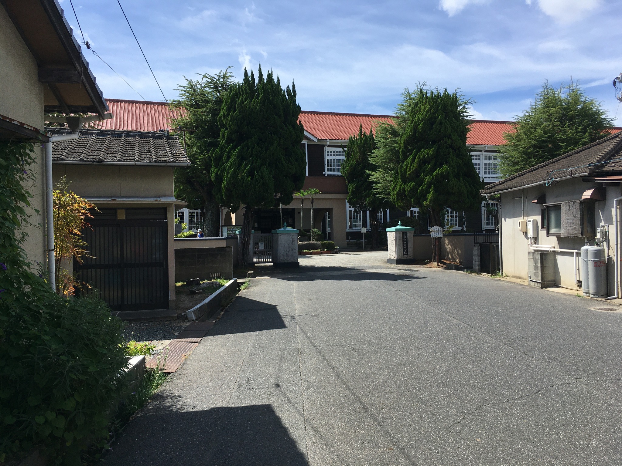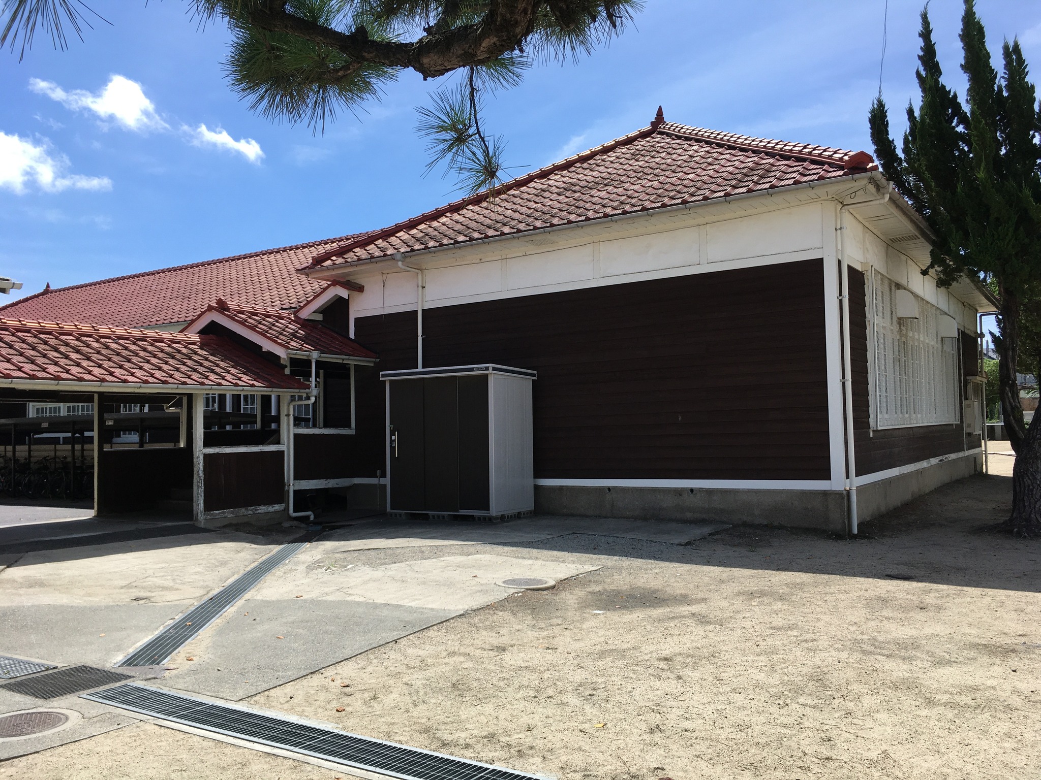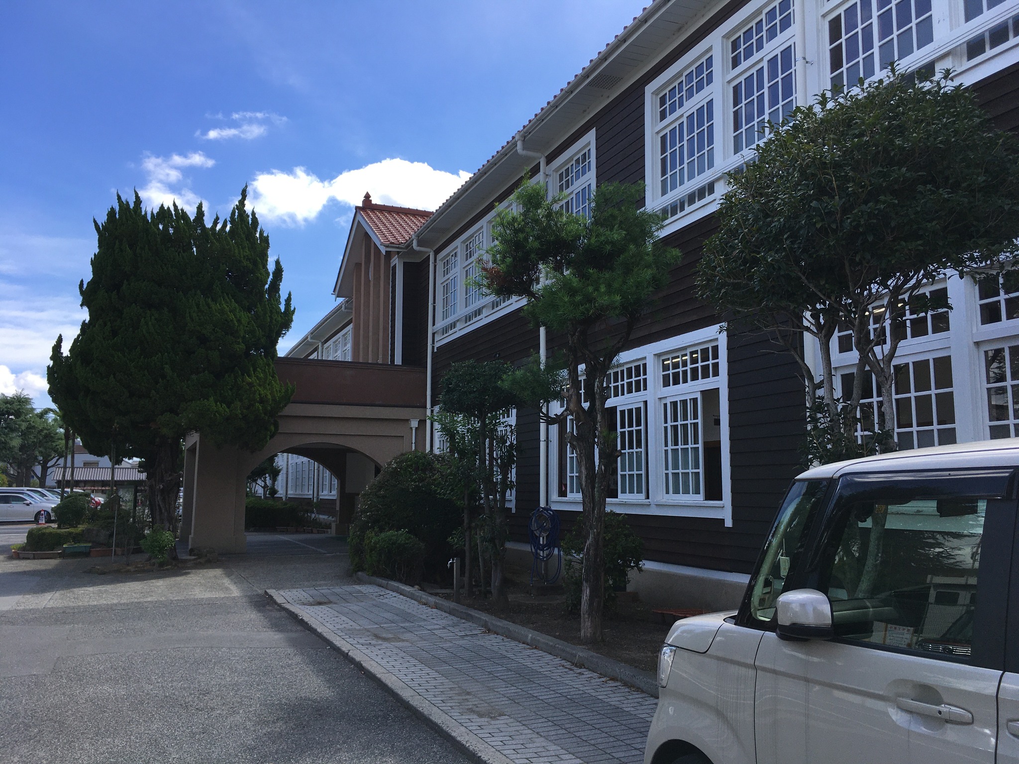 倉敷その四、木造校舎。 午後の新幹線には時間があるので、母校、倉敷市立西中学校に歩いて行ってみた。道が新しくなっていて少し迷ったが、着いたら懐かしい。でも15年前に来た時よりも、屋根も壁板も綺麗になっていた。行き合った人に聞くと、数年前に耐震補強、板の張り替えなどリニューアルしたそうだ。 彼は「僕は昨年赴任したんですけど、良いですねえ」と、若い教員だった。 築75年ほど。当時生徒が掃除、水拭き、油引きなどやっていた。皆んなでやるのでそれほど嫌ではなかったが、時々疎かにすると誰かが注意していた。良いなあ、この雰囲気。リニューアルすれば保つのなら、木造が良いねえ。