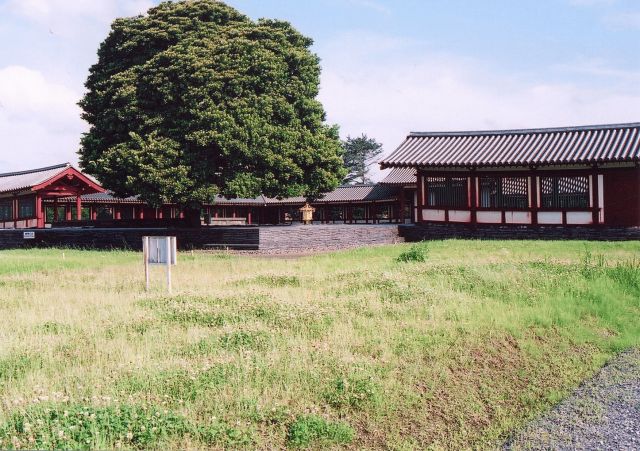 | 2006年6月1日、京葉道路を快適に飛ばして、着いた市原市は往古を偲べる別世界。市役所の側には、国分寺跡と国分尼寺跡があり、雰囲気のある街だ。 国分寺跡は草地になっているが、きちんと区画を残しているし、国分尼寺跡には展示館を作り、立派な中門と回廊を復元している。 |