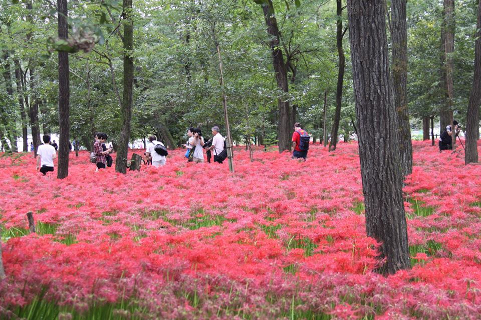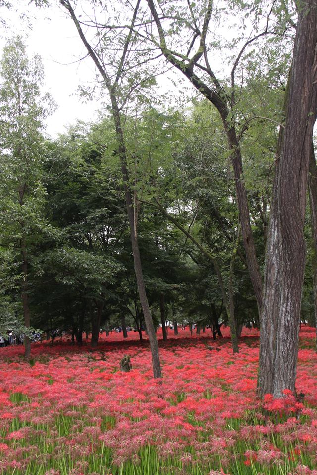 高麗神社を拝観した後、500万本の曼珠沙華群生地て有名な巾着田曼珠沙華公園へ。初めてでもう終り掛けだったが、これが炎天下の明るい中で満開だったら凄い迫力だと思う。 子供の頃、曼珠沙華とは言わず、彼岸花と言って、確か不吉な花と言われていたような気がする。まあ気にしなければそれなりに奇麗な花だ。 |