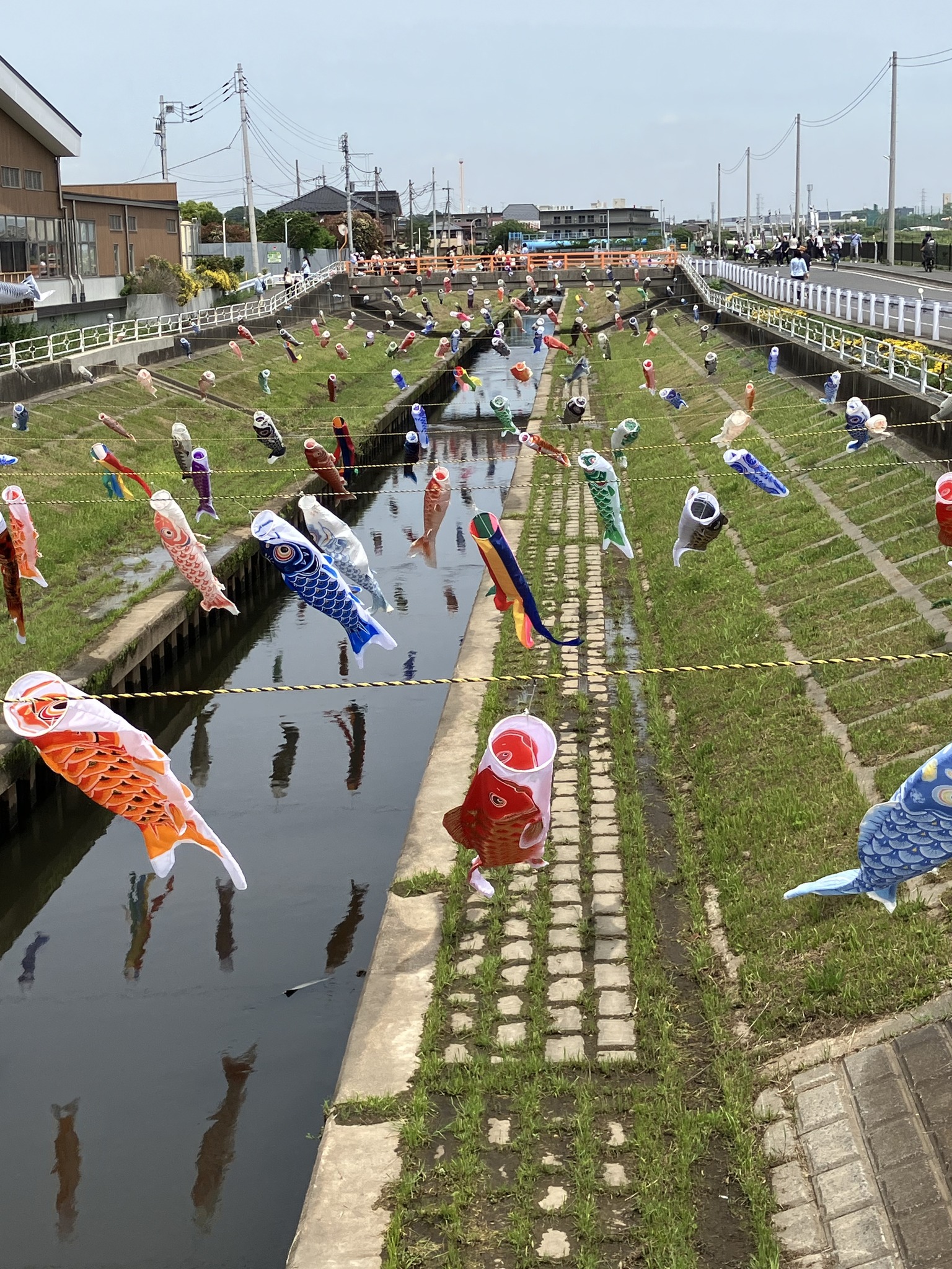 | 国分川鯉のぼりフェスティバル。この狭い川に時々、本物の鯉が泳いでいるんだ。ボラはいないけど。 | 側の広場には大きな鯉のぼり。4日5日は屋台も出て賑やからしい。 | ウチの前のツツジがほぼ満開。20年間、何の面倒も見ていないが、毎年綺麗に咲いてくれる。ありきたりのツツジだけれど、嬉しいことだ。 あちこちにあるという事は、丈夫で安いんだな。 | ご近所のツツジは珍しくて綺麗だ。 |