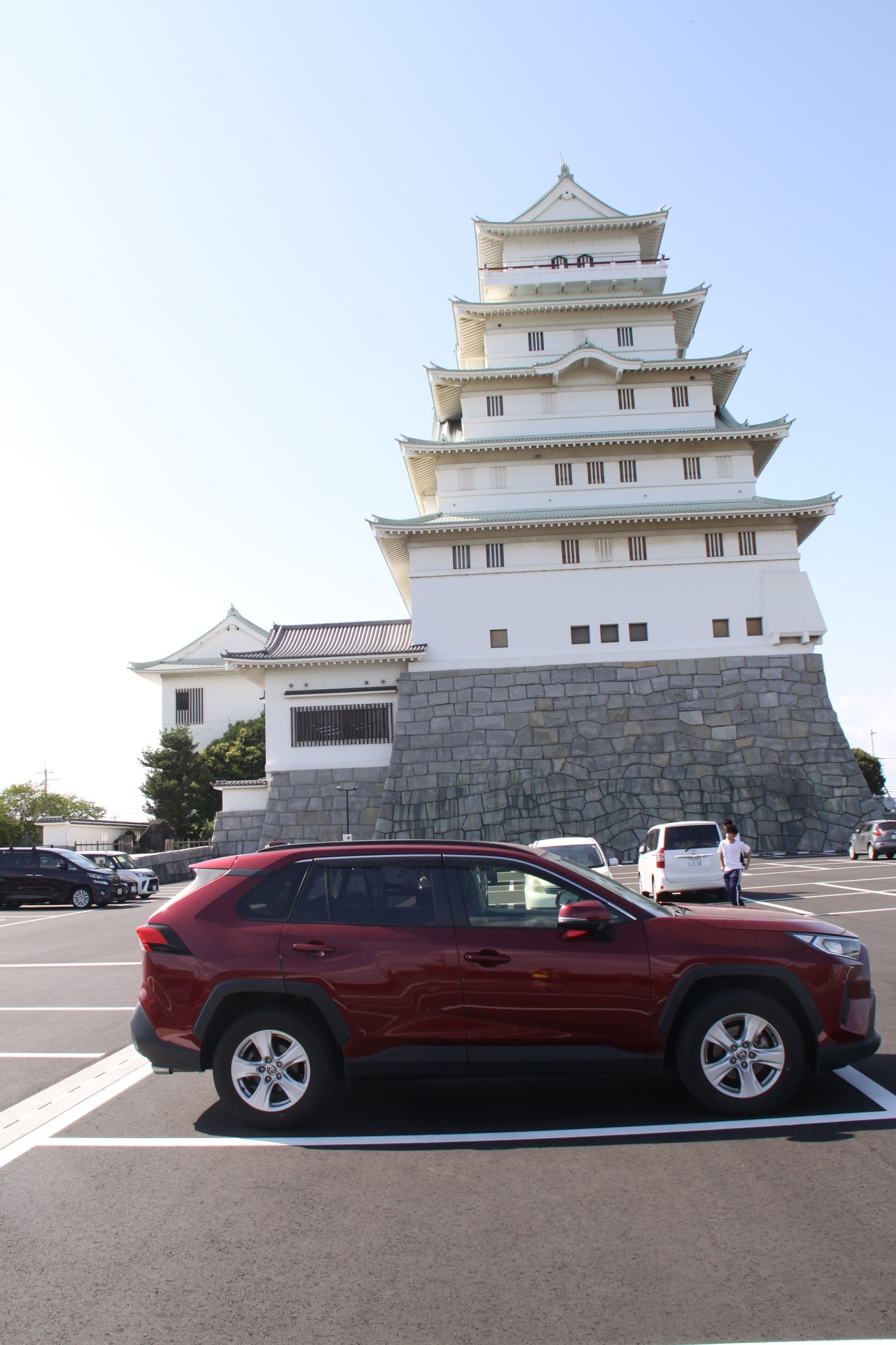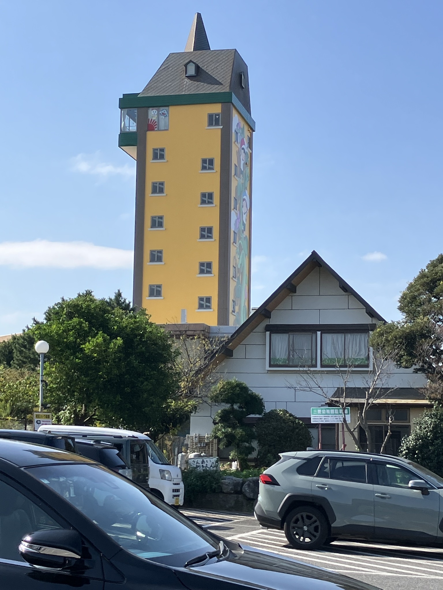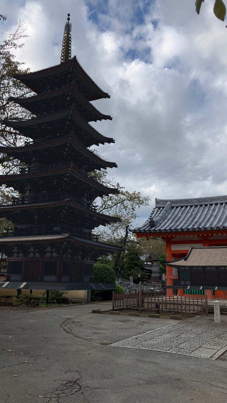 | 古代出雲大社の想像図。季刊大林の力作。 | 豊田城を見晴るかすRAV4。 | 三愛幼稚園の不思議な塔。 | 国府台からかつての川越に塔を見る。 | 塔はVRで、右の山門は現在の本物。 |