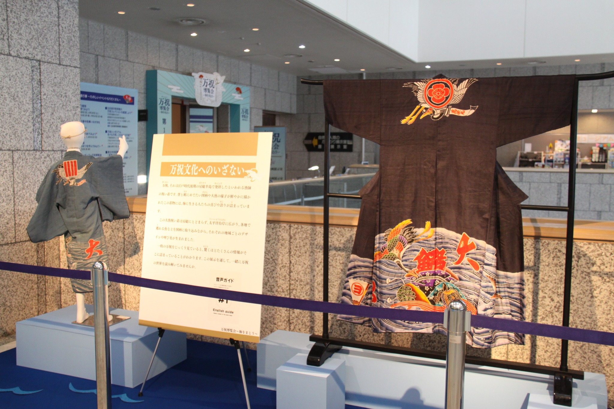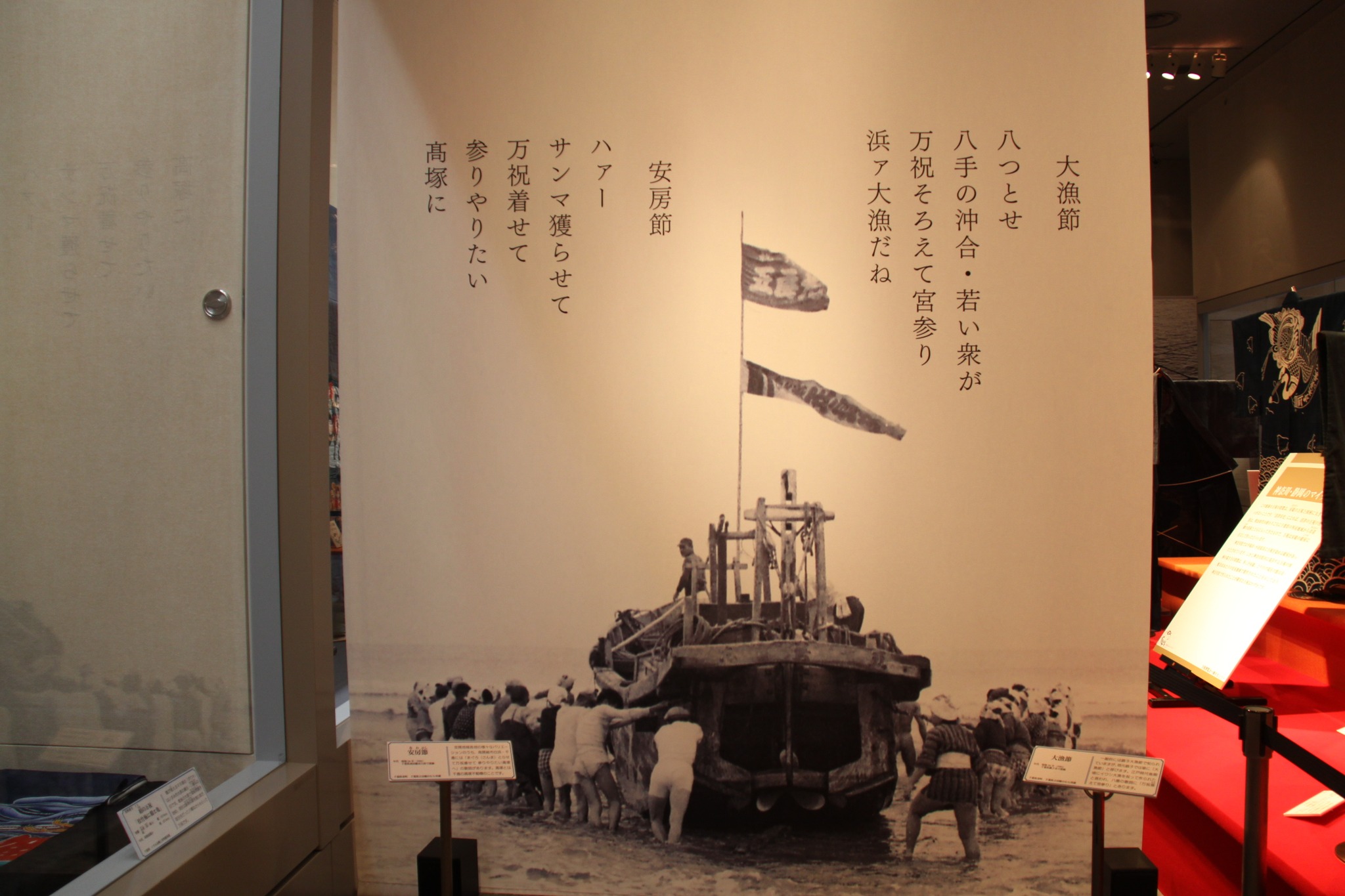 思い立って千葉市までドライブ。通勤する長男を市川駅まで送った後、そのまま京葉道路で。 まずは千葉県立博物館の「万祝博覧会−海をまとう−」。木綿生地に藍染と絵入れ。万祝の発祥は房総で、江戸後期から大漁の祝い着として青森から静岡までの太平洋岸に広まったが、イワシを綿花の肥料とする習慣が無くなり、漁業が下火になるに連れて廃れてしまった。
