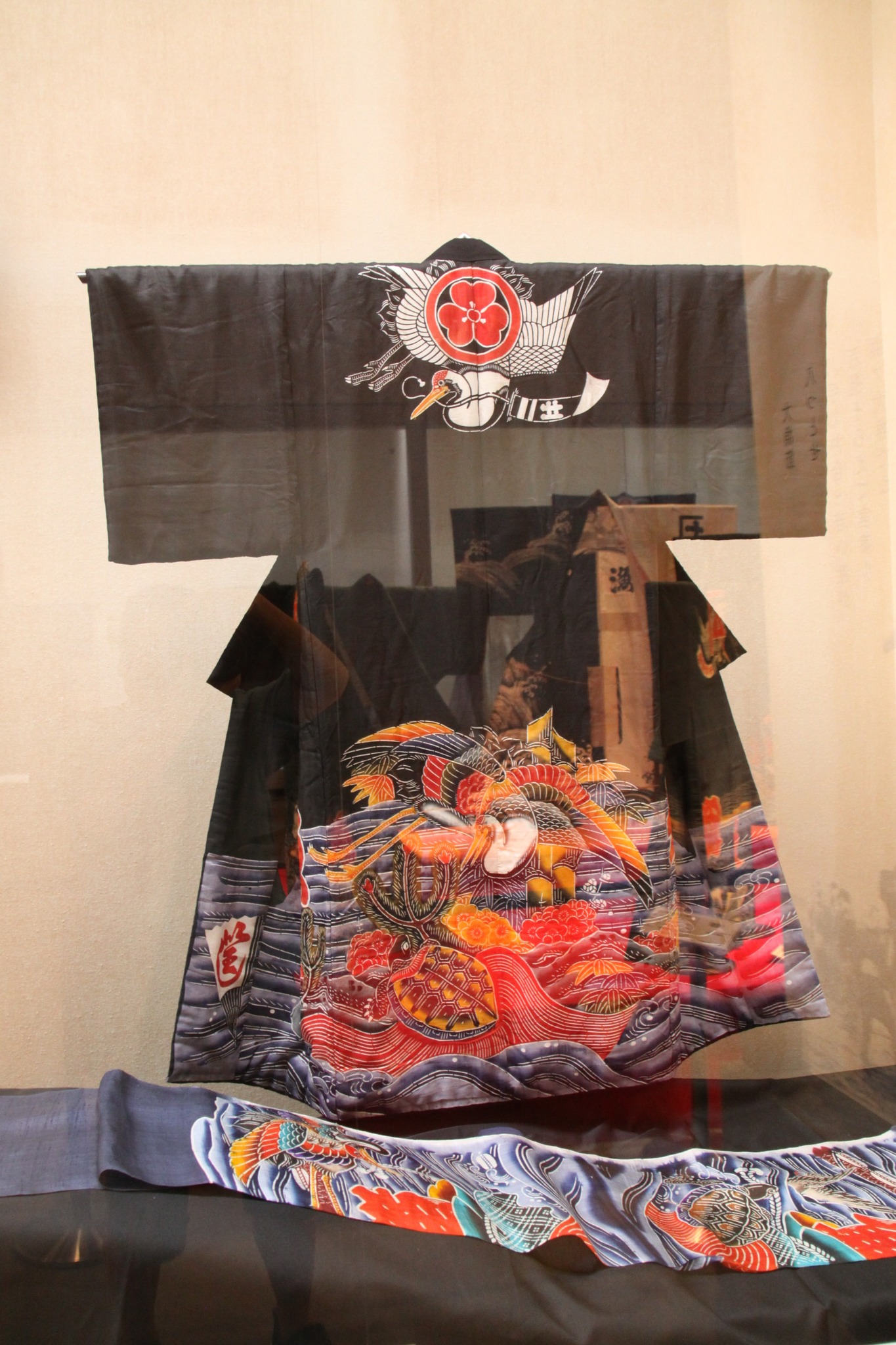 | 千葉県立中央博物館。 | なかなか格好良い。 | 背中の家紋は「丸に横木瓜」。ウチの家紋と同じだった。 | 鮮やかなもんだ。 | 房総が発祥の地で、静岡から青森あたりまでの太平洋岸に広まっていた。 |