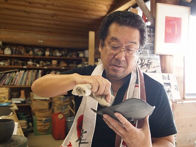 | 泉澤さんから私の写真をもらいました。うーん、何作るかなあ。 | まず高台の土を盛って。 | 茶碗にするか。 | どんな皿に仕上がるかな。 |