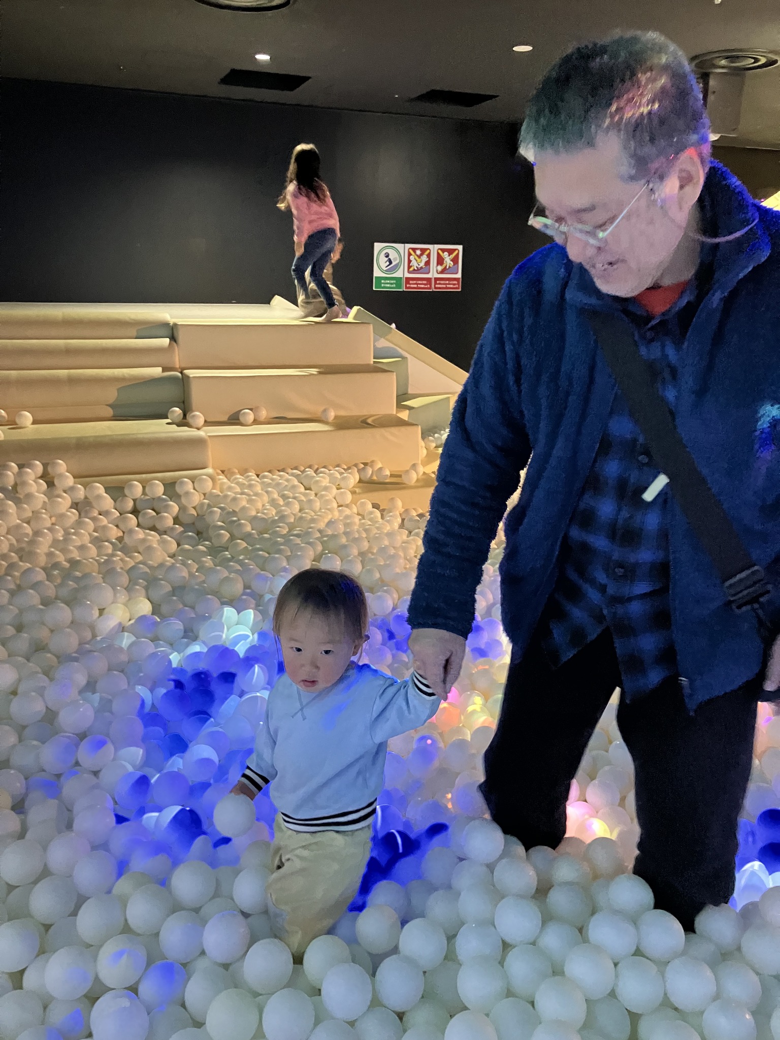 春休みになって、今日は校庭開放だったのに雨が降ったので、急遽松戸のリトルプラネットへ行くという連絡があり、女房と私は大喜びで孫守りへ。