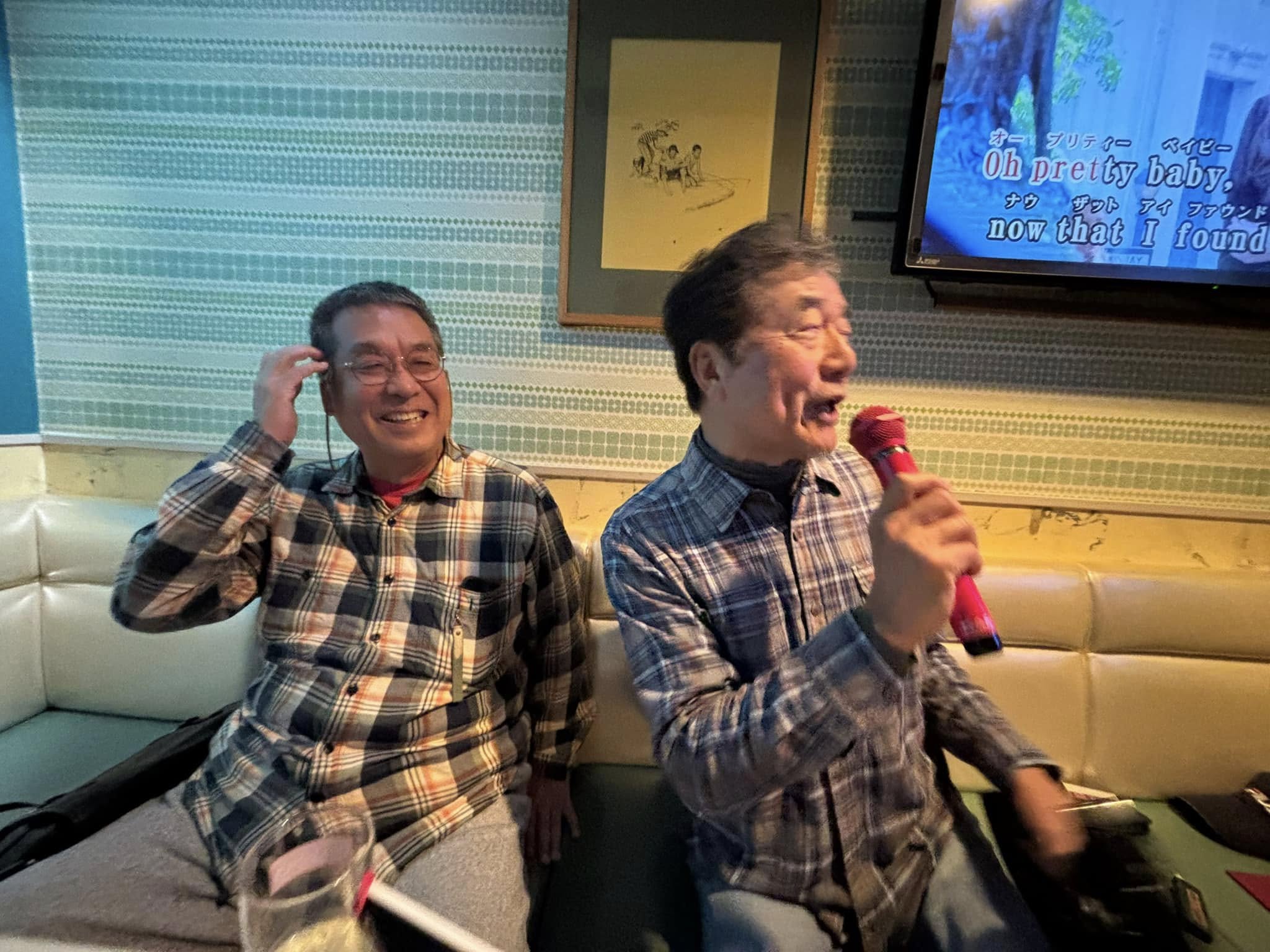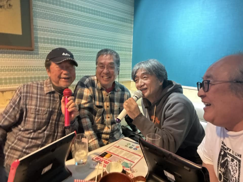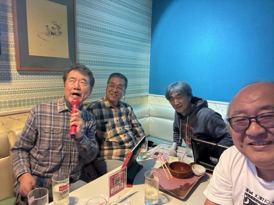 | アオサギくん、10日間ほど毎日会うなあ。このポーズでほとんど動かない。ハシビロコウみたいだ。 | 珍しく背伸びしてくれた。 | アホなジジイ4人。馬肉と酒の後で、浮かれてます。 | えーこの歌知らないなあ。 | もうだいぶ酔っ払っています。 |