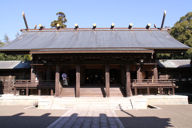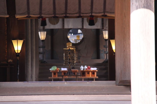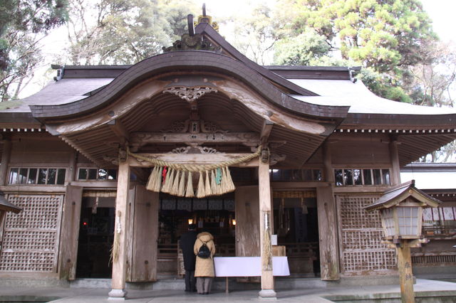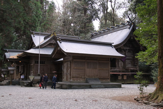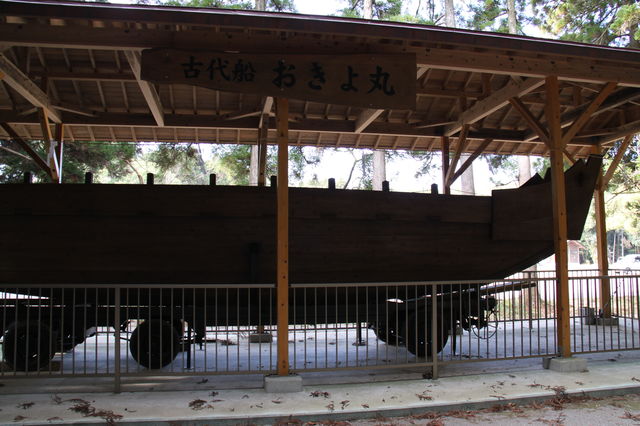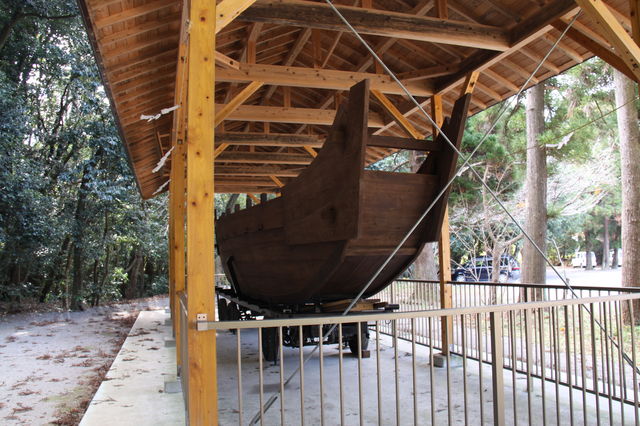 | - | 埴輪の古代船を復元していました。 | - | ご本殿。 | お寺さんと違って、なぜか神社の木造建築は落ち着きます。 |
