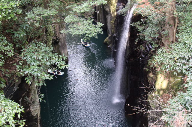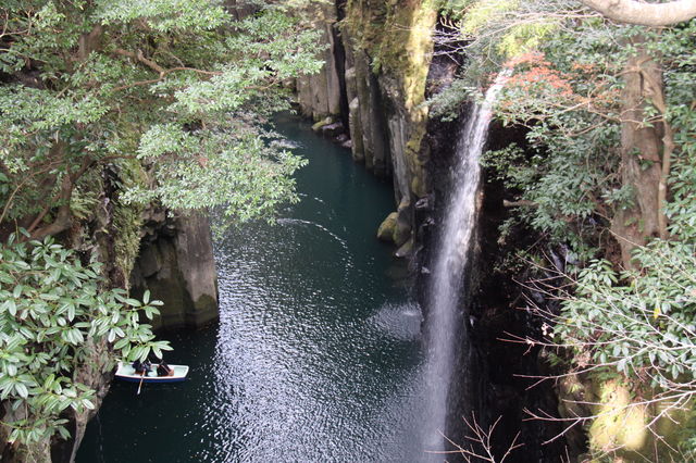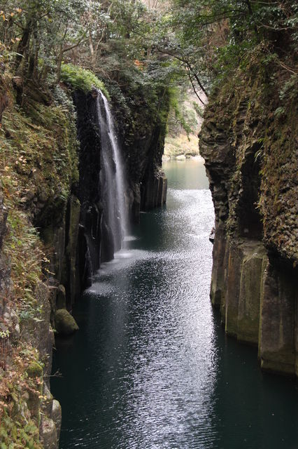 | ここがあの高千穂峡、真名井の滝。えー、こんなモノかい? | 天孫降臨なんて有り得ないよ。 | あの滝は、ここから流れ落ちているのだ。 | この池が水源なのじゃ。 | - |