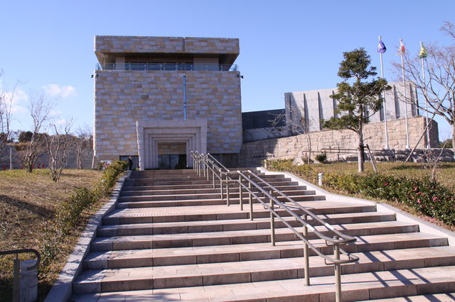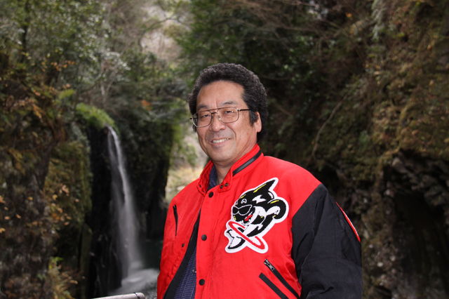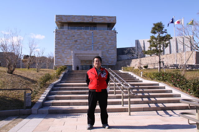 | 遊歩道が有って、上から眺められるのです。 | 本当に写真の力は恐ろしい。深山幽谷、物凄く良いイメージを持っていました。 | - | あの滝をバックに。このジャケット、20年前に私が作ったOPTIONグッズです。 | 西都原考古博物館。なかなか手が込んだ展示ですが、もう一歩。 |