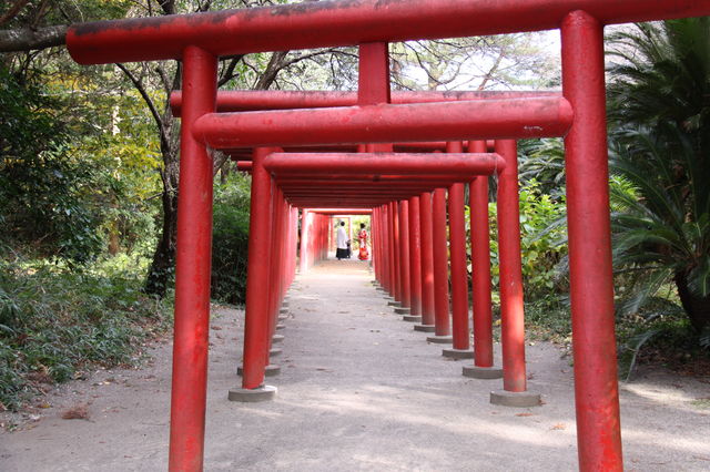| - | - | 王家の谷、ならぬ王家の高台、西都原だったんでしょうね。 | 宮崎神宮にやって来ました。境内に有るお稲荷さん。 | この鳥居が、美しくも有り不気味でもあり。 |