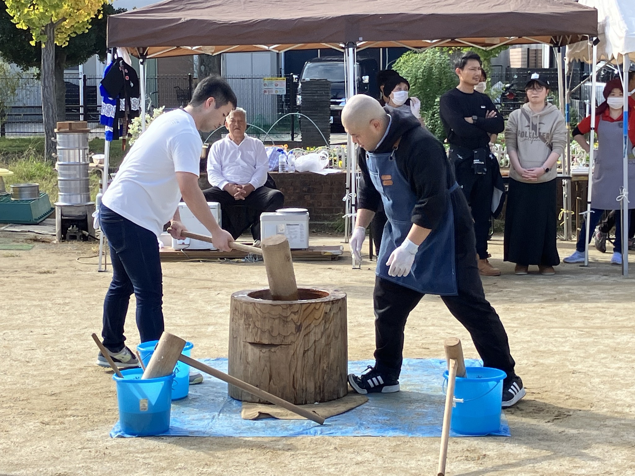 いつもは孫たちと遊ぶ公園で、今日は自治会の餅つき会。 女房はまとめ役をしているので朝から準備。私は腰が痛いし、昼過ぎから顔出しするだけ。 1時に行くと、女房は受付。吹奏楽の演奏をやっていたが、鎌ヶ谷辺りのアマチュア楽団らしくいまいちだったけれど、まあこんなものかな。ボチボチ人が集まって来た。 餅つきも大人しやかにやっていて、賑やかじゃなかった。私の小さい頃は親族や近所の人が集まってワイワイだったが、やはり自治会だと親近感が無いのか、宣伝不足か。 帰って食べた小豆餅は美味かったけど。