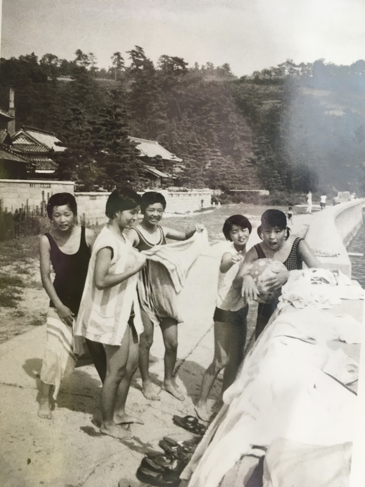 | 3歳くらいか、全く記憶にない。 | おふくろと妹。倉敷で印刷屋をやっていた。 | 県大会で3位になった試合。インナーの私がウィングの爲房にパス。彼は50代で亡くなった。 | 彼女達と瀬戸内海に泳ぎに行った。この頃は意外とモテたのだ。 | 彼女達も今は70代のおばあちゃん。元気でいるのだろうか。 |