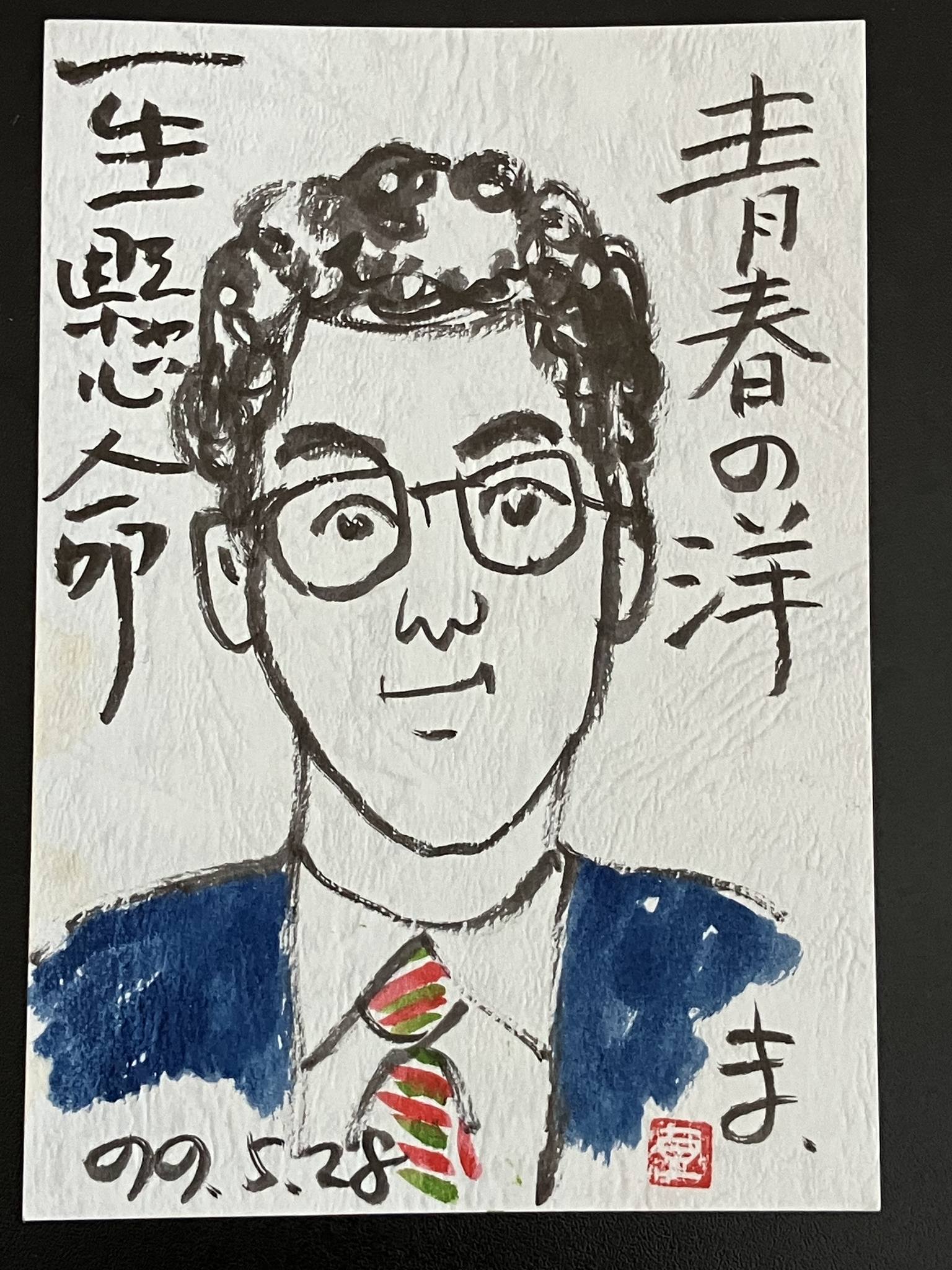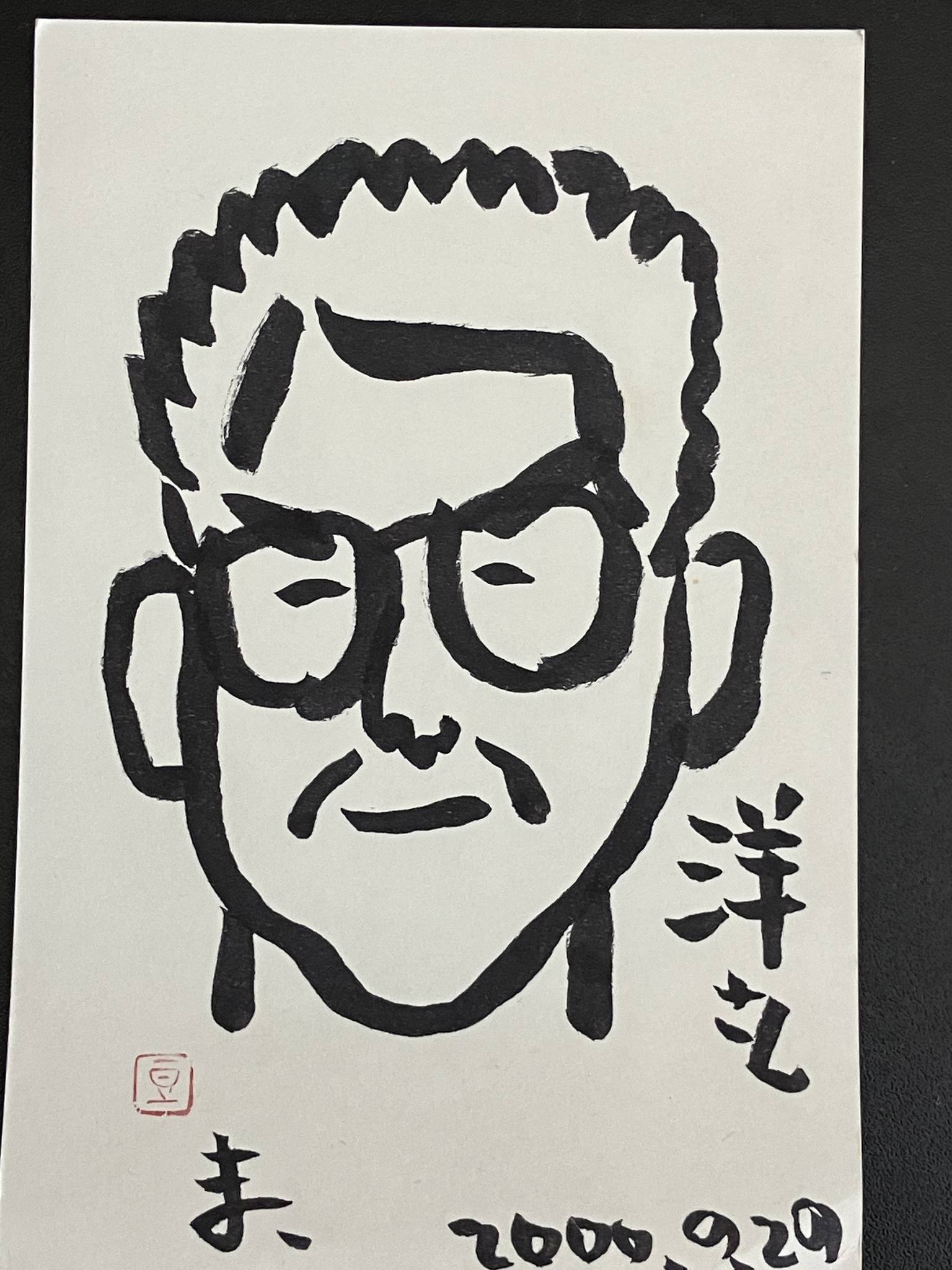 1999年にグループC3Vの創始者だった鈴木将夫さんが描いてくれた似顔絵 | 2000年に描いてくれたもののタッチが激変。 私の本質を見抜いたのか、鈴木さんの病状が変化したのか。 |