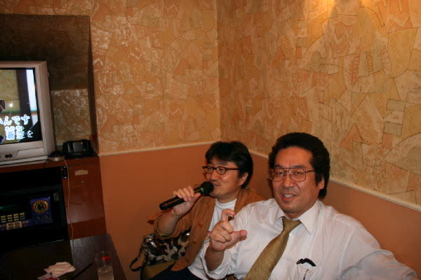東レのOB会で、先輩の岡本さんと。 | 映画の会の二次会。いつも大騒ぎのカラオケで、工藤監督と。 |