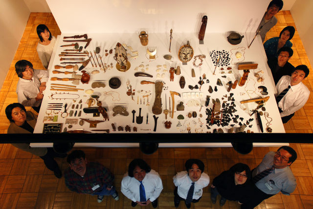東大総合博物館での学芸員専修セミナーに参加。一週間の受講と実践でこの展示を作りました。この仲間とも今は飲み友達。 | 宮崎へ飲兵衛旅行。高千穂峡は虚仮おどしだった。ここに天孫降臨は無い。25年ほど前に私が作ったOPTIONジャンパー着ました。 |