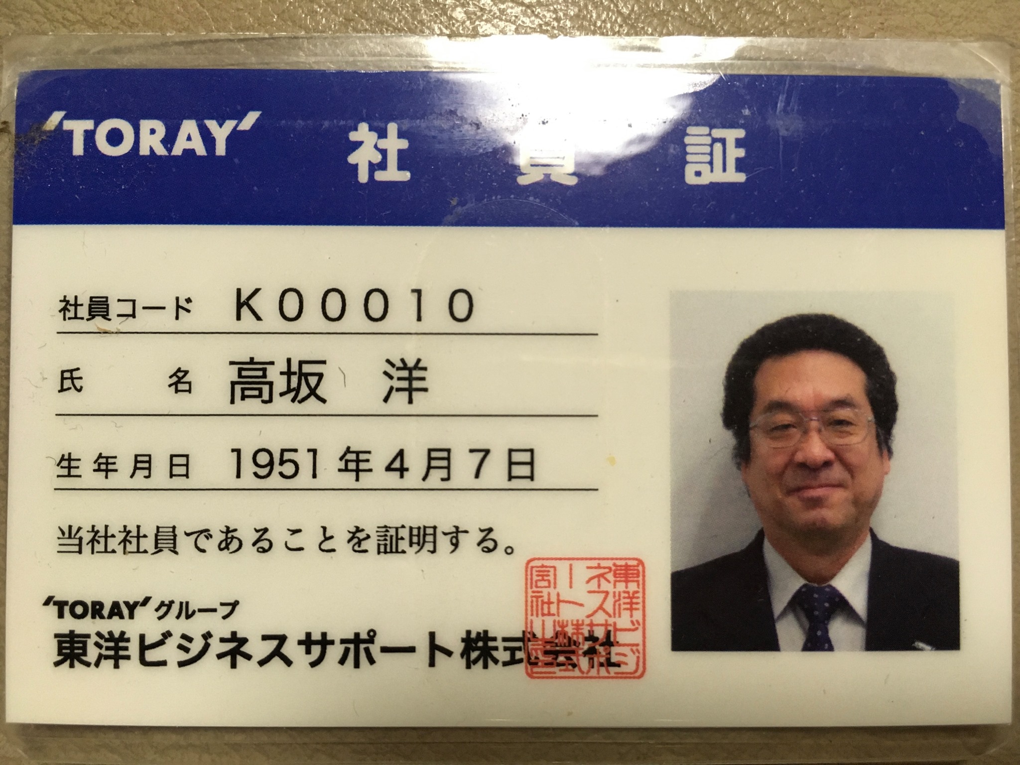 飲み屋で仲良くなった人と名刺交換。 | 最後の東洋ビジネスサポート社員証。 |