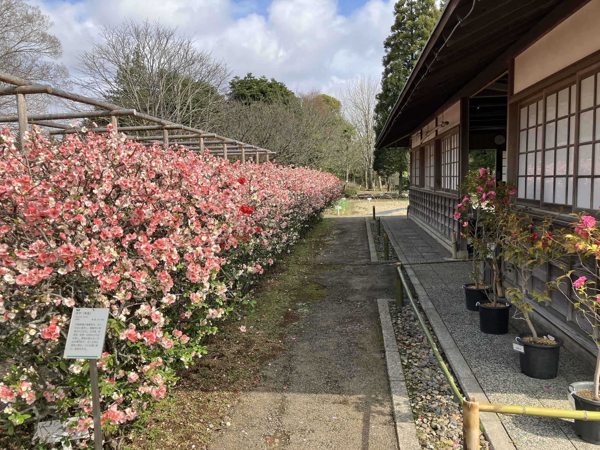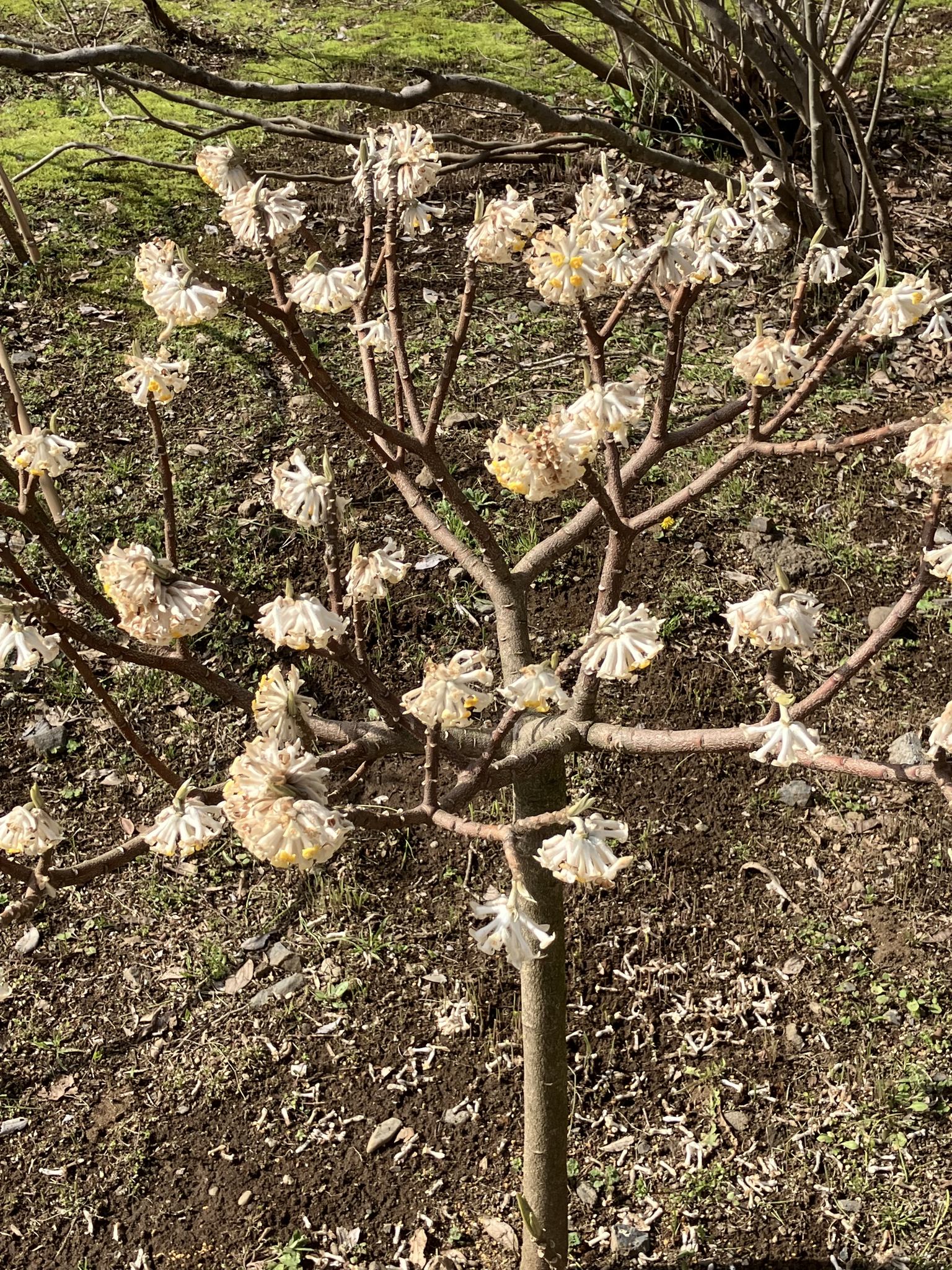 | 歴博の桜は五分咲き程度。まだ花見客が居ないのでゆっくり歩くのが気持ち良い。 | ここも久し振り。企画展をやっていないので客は数人程度。 | 彩り少ない庭園で、ボケの花壁が綺麗。 | こんなに綺麗とは思わなかった。 | ミツマタも意外と綺麗だ。確か故郷の倉敷の田舎で、山遊びの時に取って来たような。紙の原料になるとかで叔父さんに渡したような、あれ、コウゾだったかな。 |