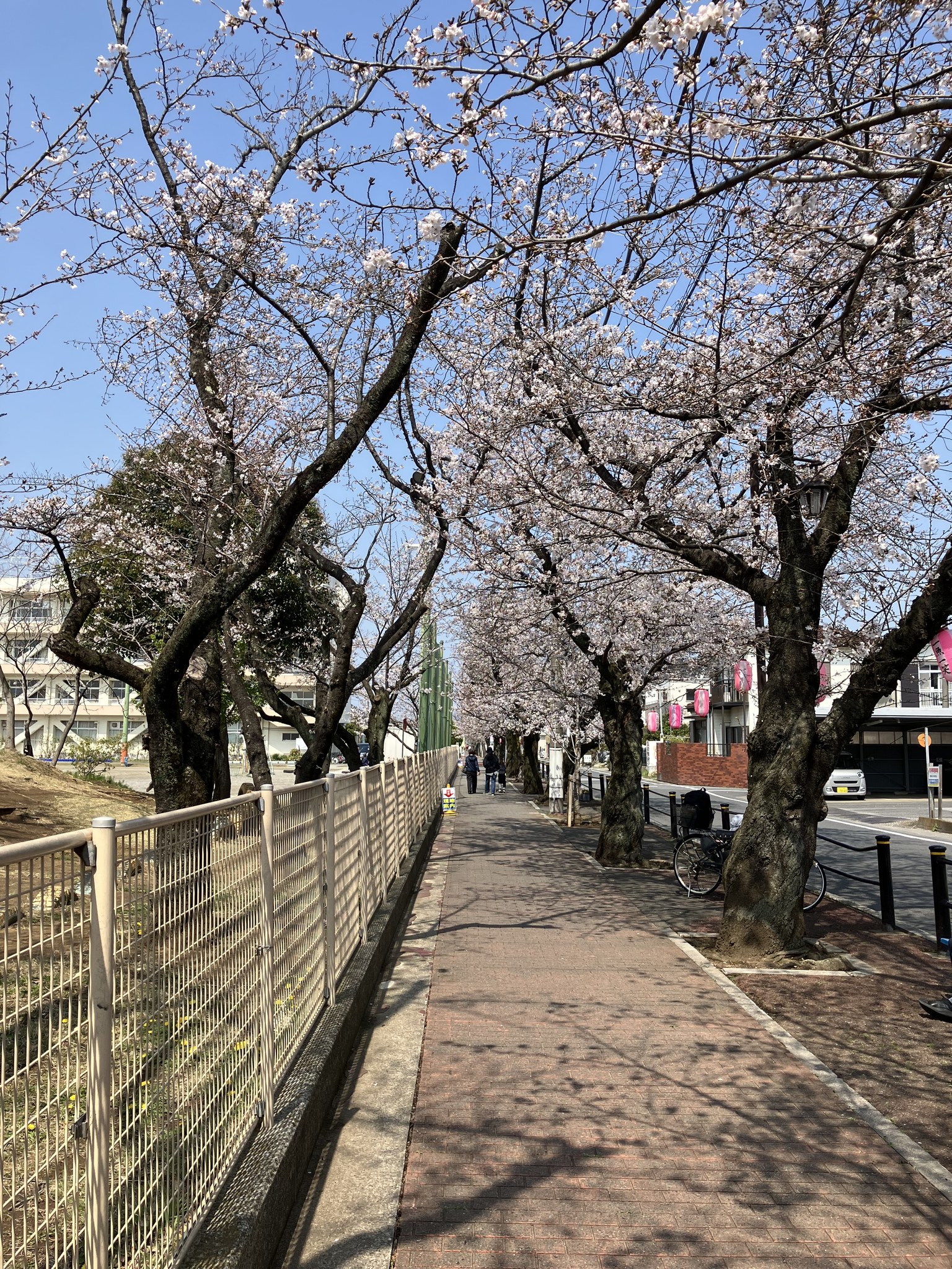 | 今日、いつもの散歩道の桜は七分咲き。40年ほど前、この道を通って長男長女を乳母車で保育園に連れて行ったものだ。共働きの我が家は、女房が先に通勤に出て、私が子供を連れて行った。女房は残業無しで帰宅し、私は残業、というサイクルで生活していた。今、長女と婿さんが孫達を育てているのを見ると、世代交代だと実感する。孫の子守りはしんどいけど楽しいもんだ。 |
