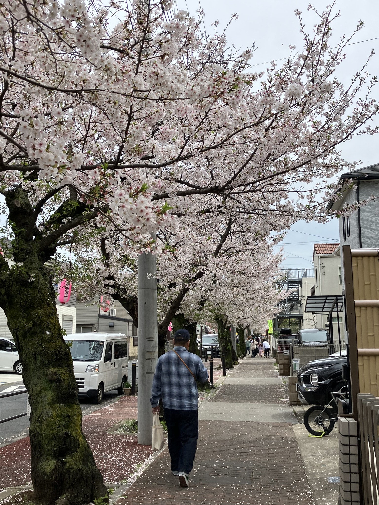 「今日は桜並木で桜祭りらしいから行ってみようか」と女房に声を掛けて散歩。保育園と小学校の側の並木道で年一回、屋台や演奏会が有る。それ程興味は無いが、天気も良いし、お店を眺めてから、私はいつもの散歩コースを歩き、女房は買い物へ。