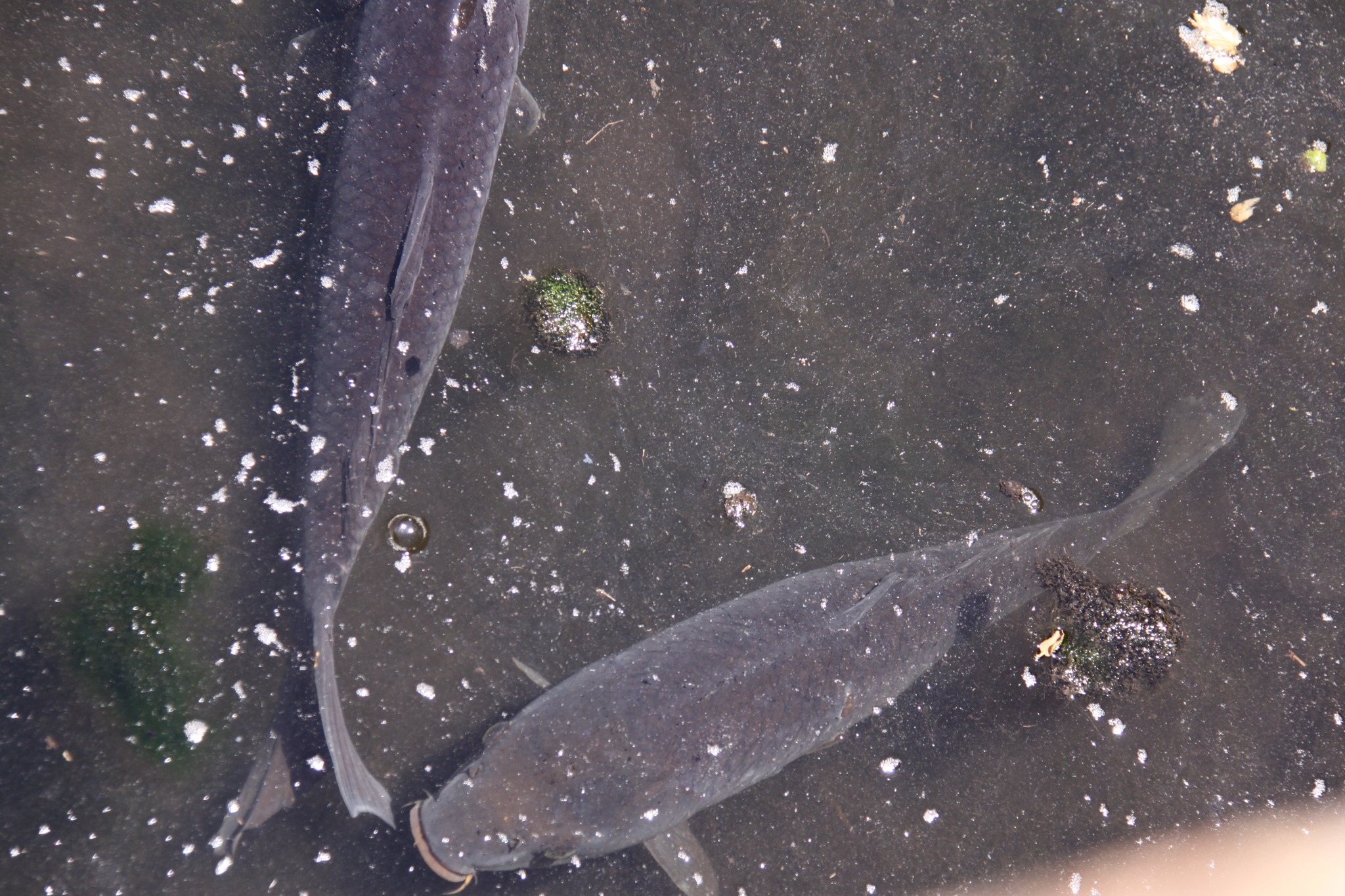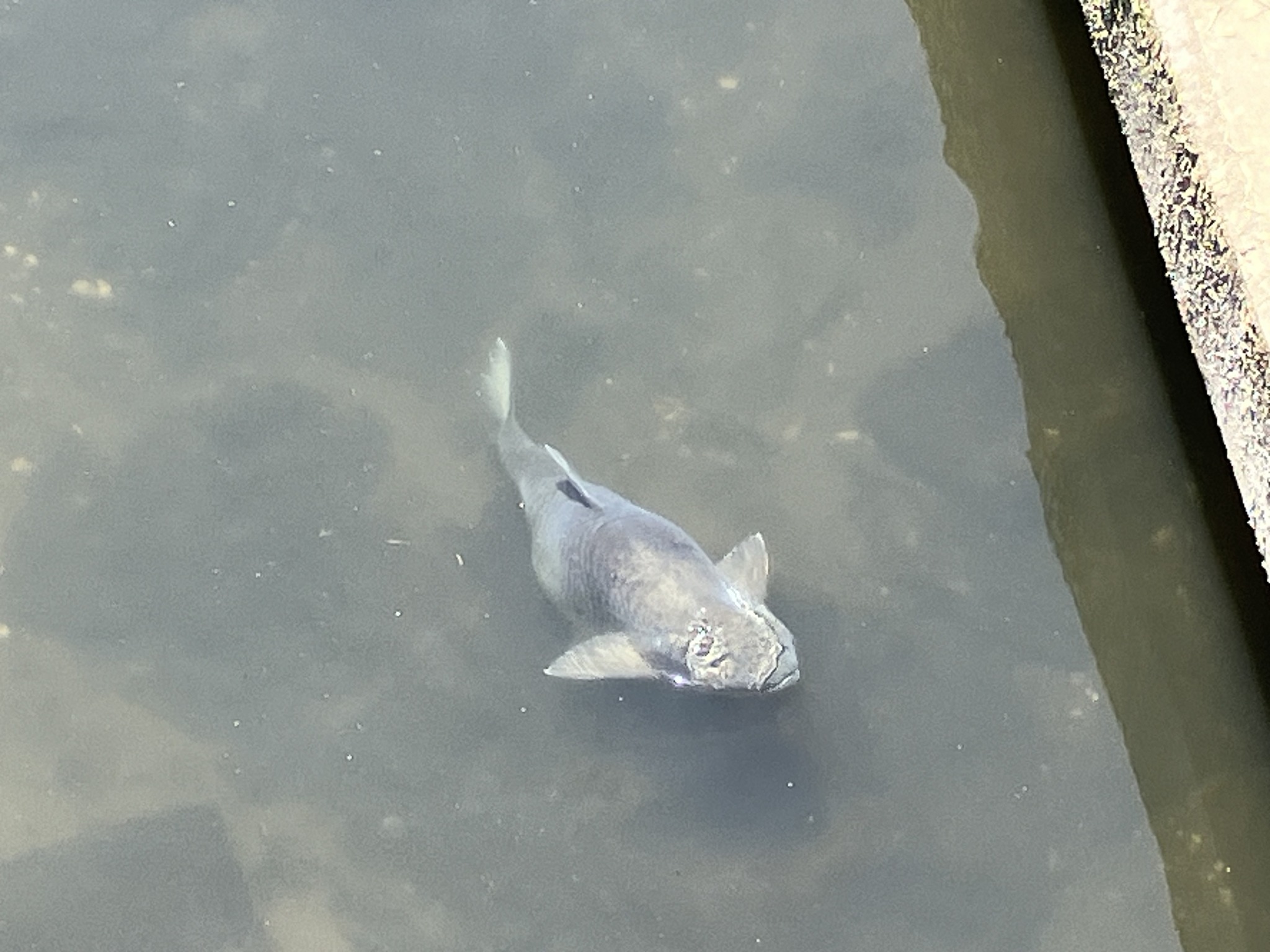 | [鯉] 2024.6.2 国分川、体長70cmほどの巨大鯉。腹が異様に膨らんでいるのは卵だな。<探訪記> |