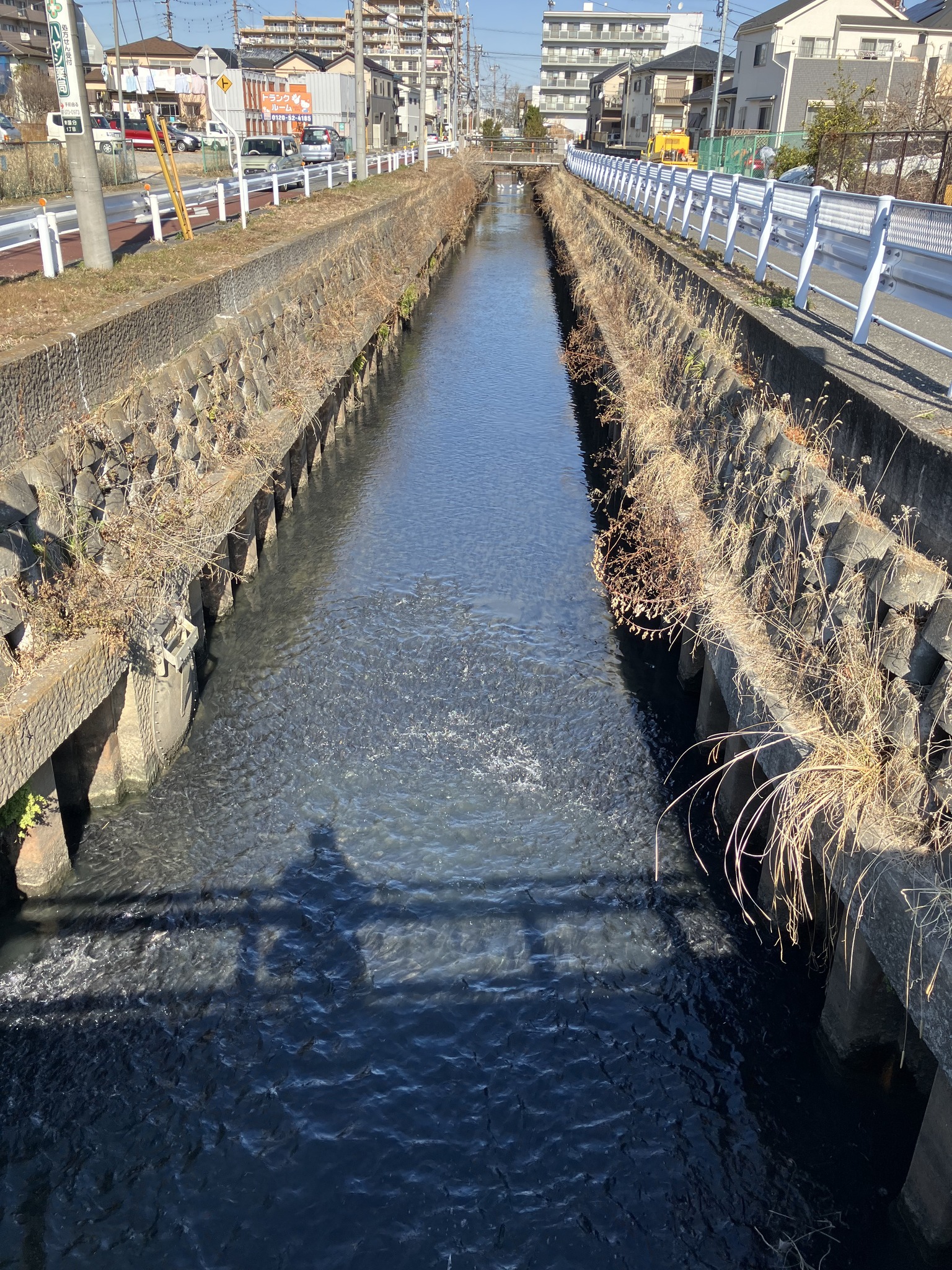 [イナ] 2024.2.3 こんな狭い春木川に。あそこは曽谷橋で、段になっているからそれ以上遡上出来ないぞ。白鷺も待っているし。<探訪記> |