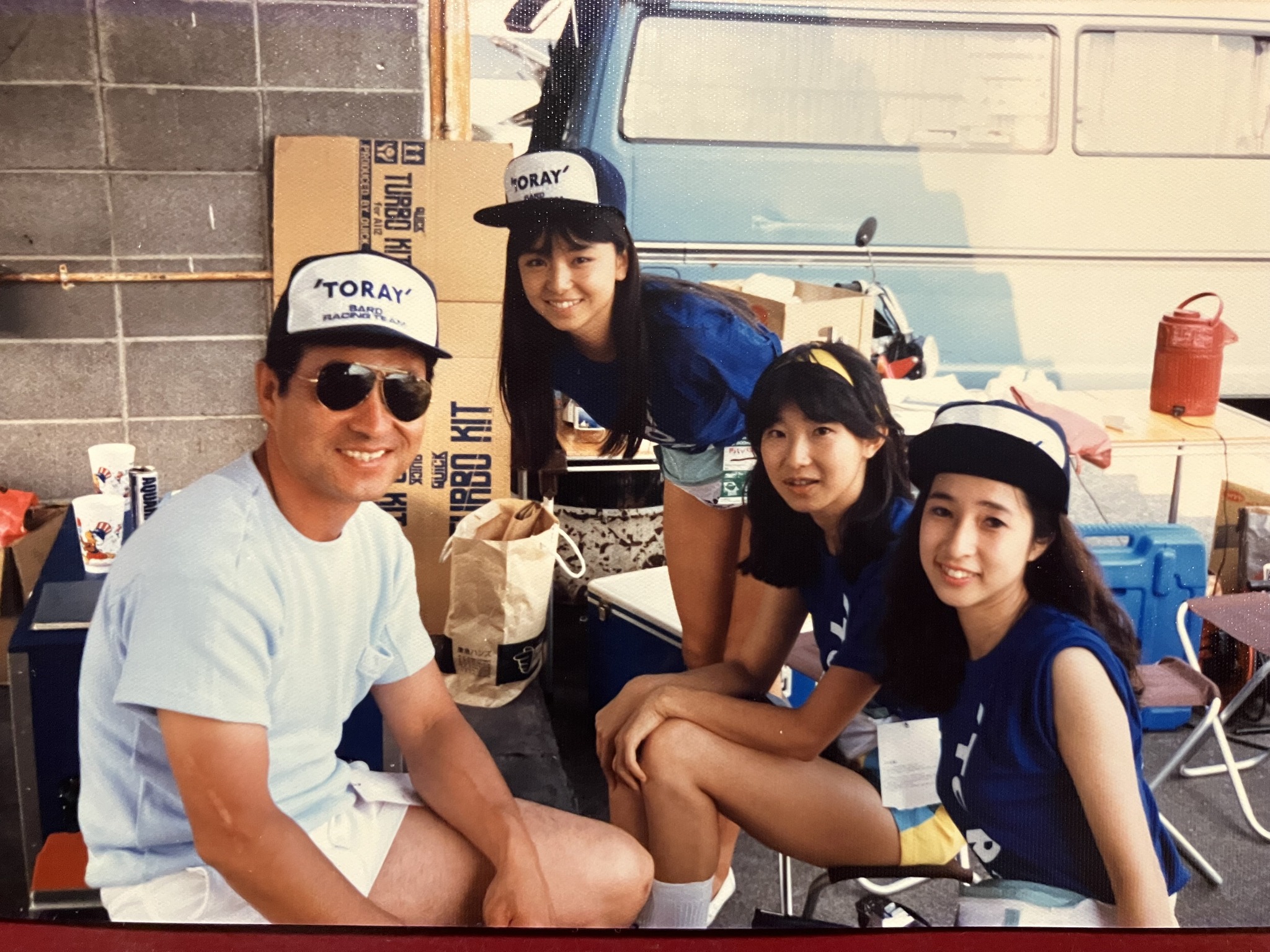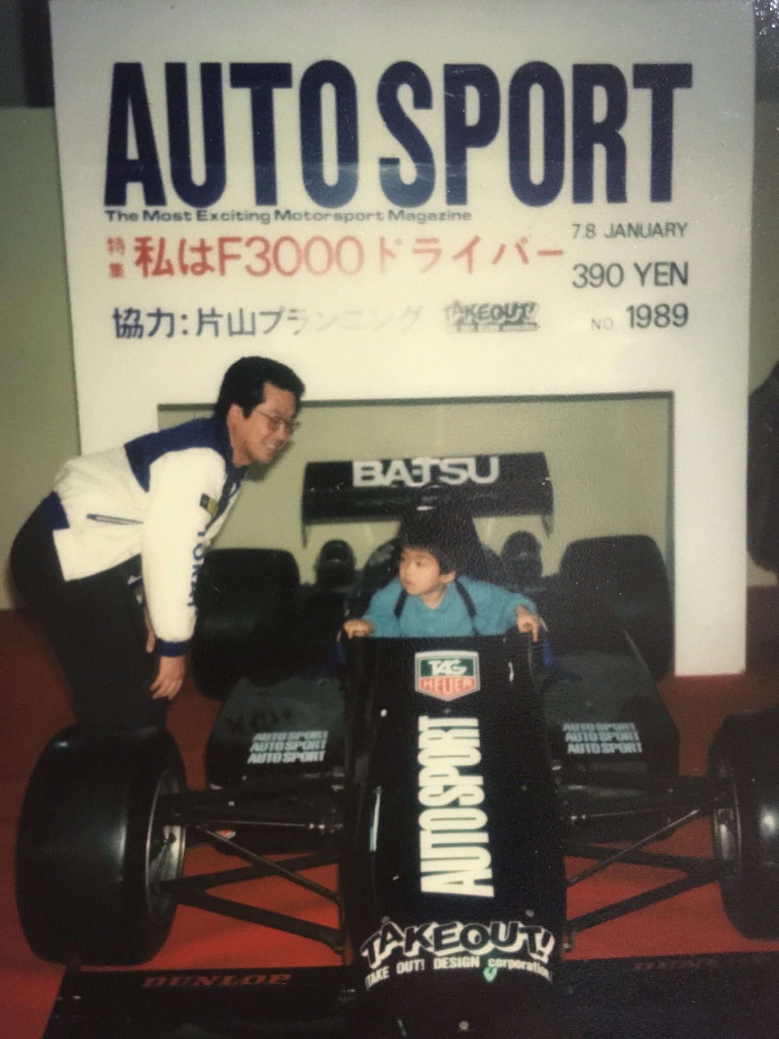 | 正月のオートサロンに息子を連れて行って、今は亡き熊谷編集長に撮って貰いました。 | 智子ちゃんは良い子でしたね。 | レースになると顔付きがまったく変わりました。 | 皆んな若い。 |