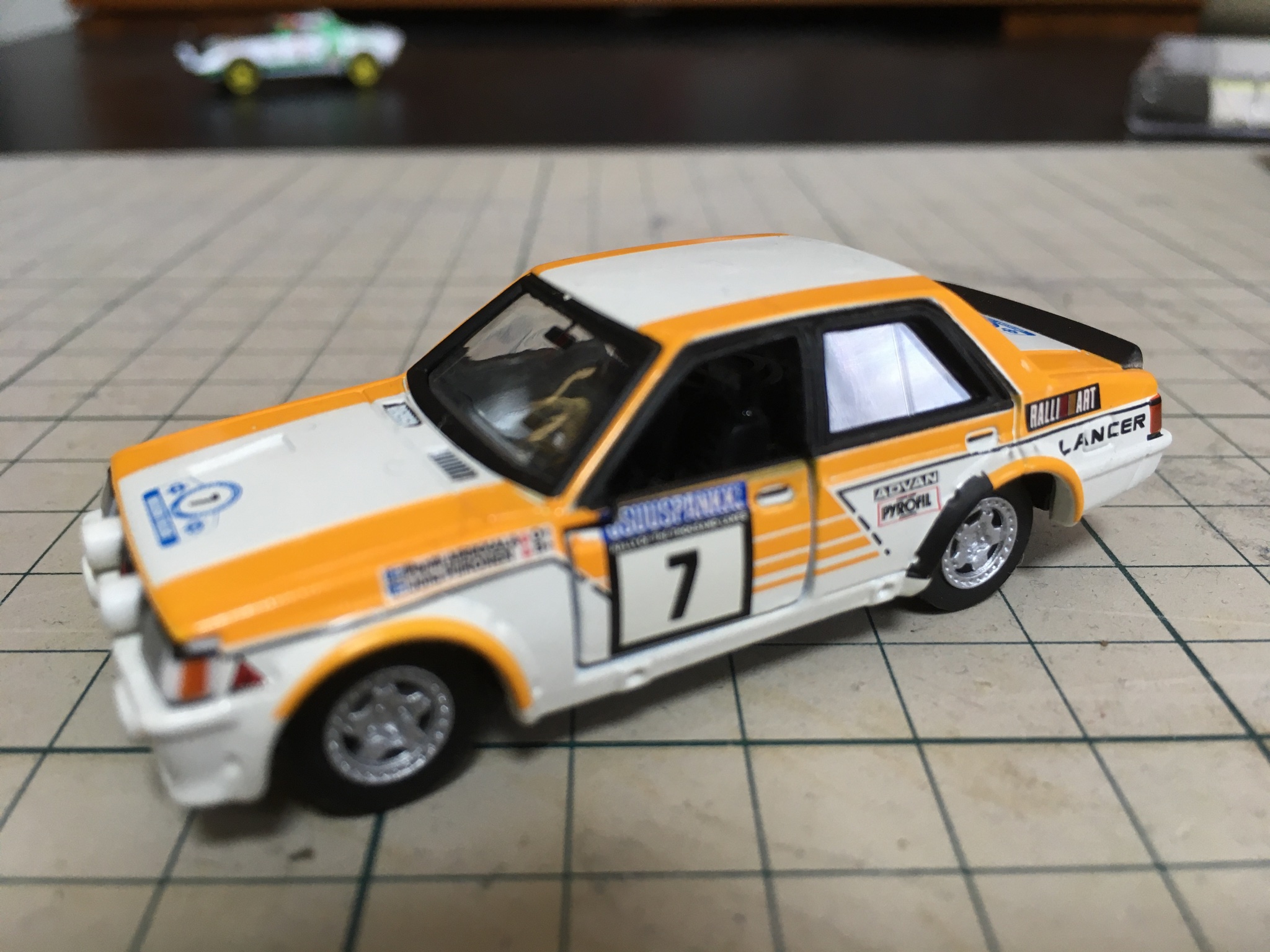 免許取得後に初めて乗ったのが親父の三菱ランサーEX。綺麗なフォルムで良い車だったなあ。そんなこんなでラリーカーも集めるようになってしまった。まあ本物は無理だからね。