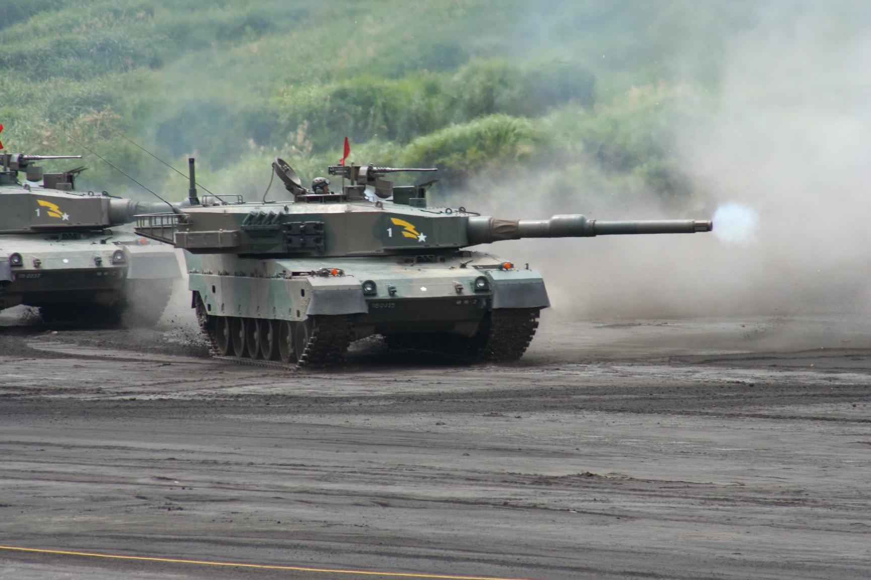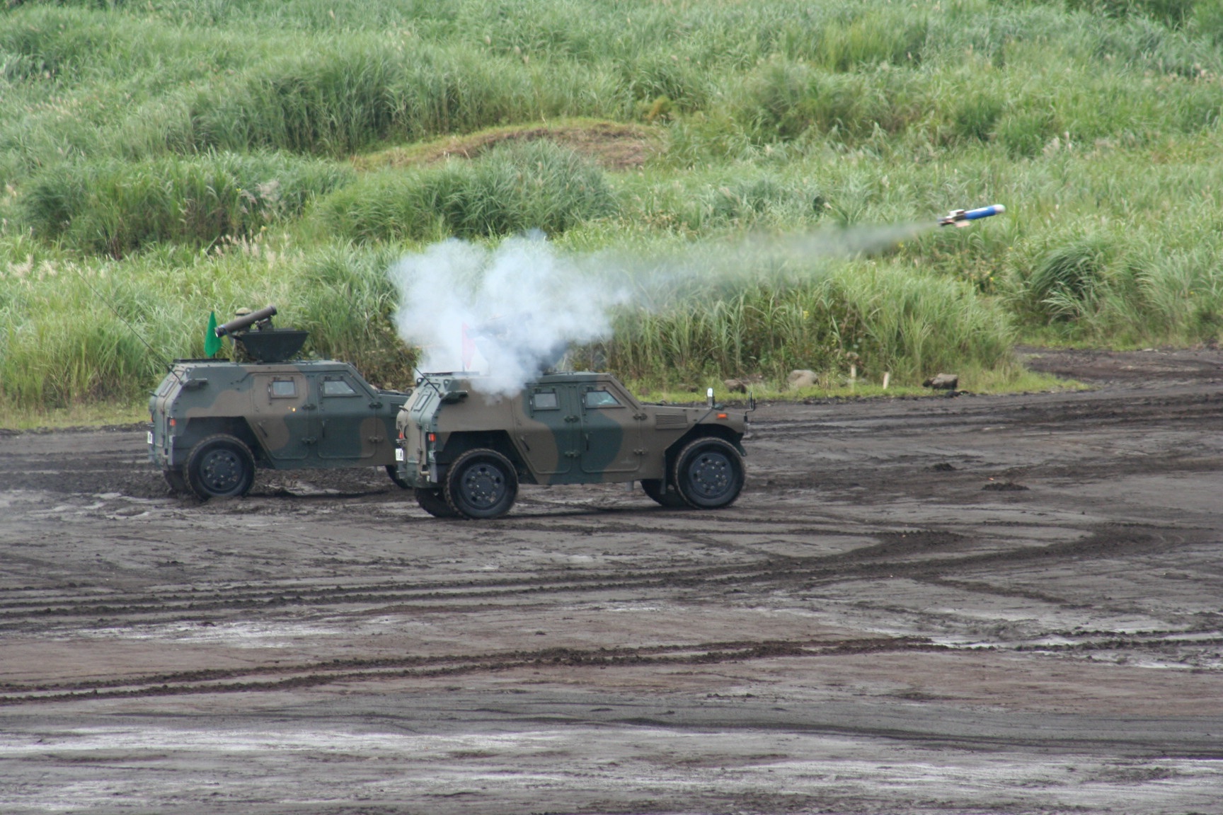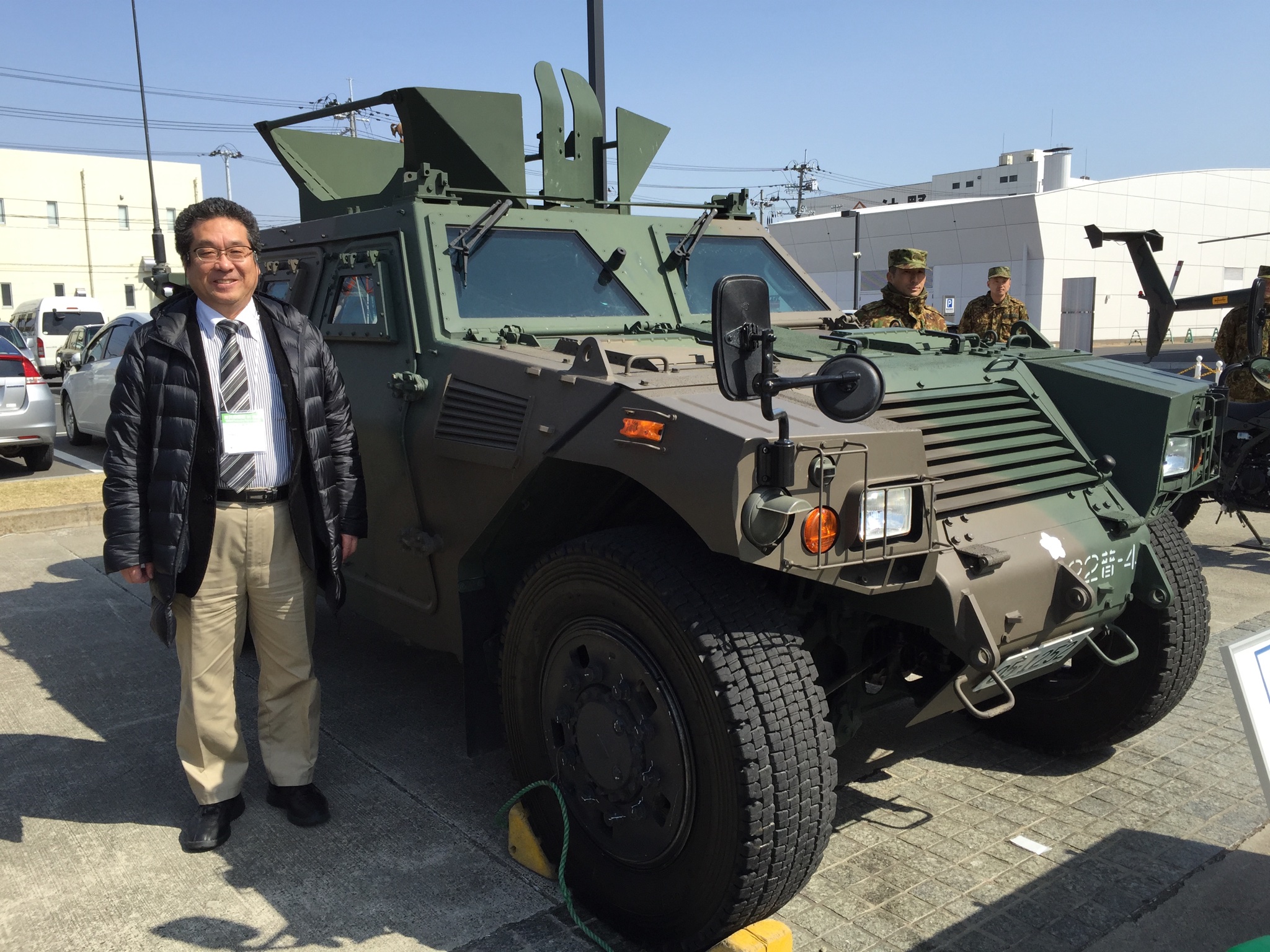 | 自衛隊の兵器、車両にも興味あり | 2015年、仙台の国際防災産業展で展示の請負仕事をしていたら、自衛隊も展示してました。この軽装甲機動車が好きなんです。 | 2006年の総合火力演習。ほんの数百m先で90戦車の実弾。空圧がドン、それから光と音。おトロしい。 | 01式軽対戦車誘導弾。 | トヨタ 自衛隊ロケット車。 |