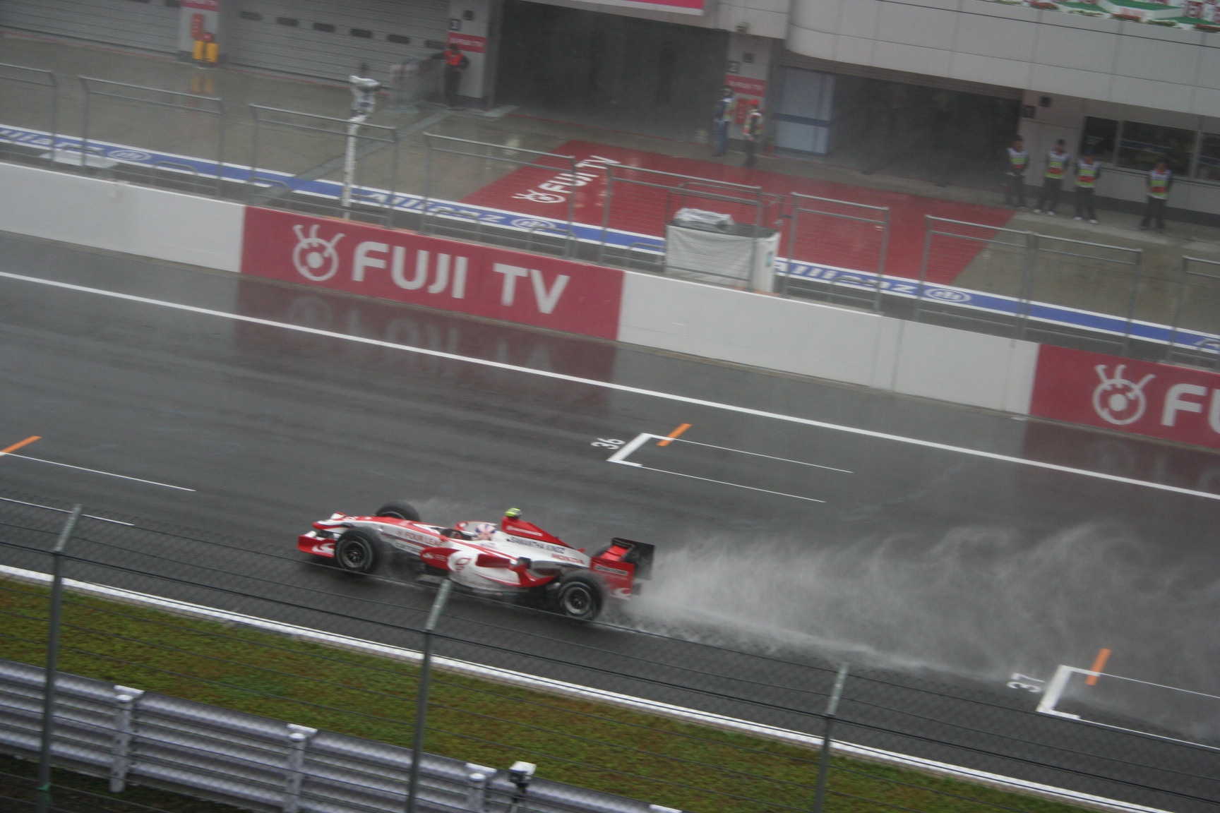 | 軽装甲車と90式戦車。 | F1関係。 | 2007年、富士スピードウェイでのF1。スーパーアグリかな。1987年には鈴鹿のF1でお手伝いした。 | こんな雨の中で走り、抜くなんて気違い沙汰。 | ホンダF1 RA302。 |