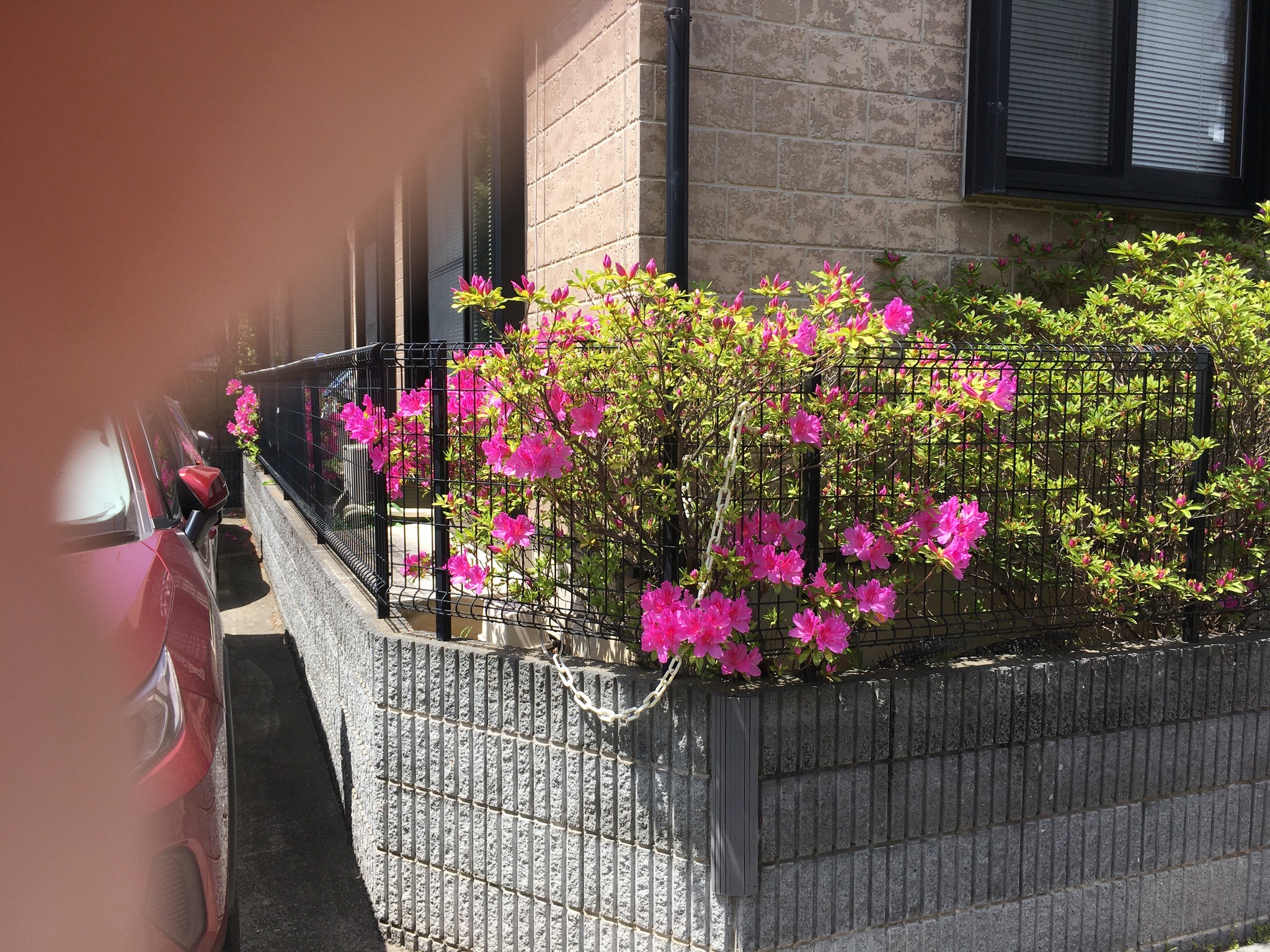 | ウチのツツジは何の世話もしてないのに毎年綺麗な花を咲かせてくれる。南面のツツジは満開。右側の東面のツツジはこれから咲いて楽しませてくれる。強い花なんだなあ。 |